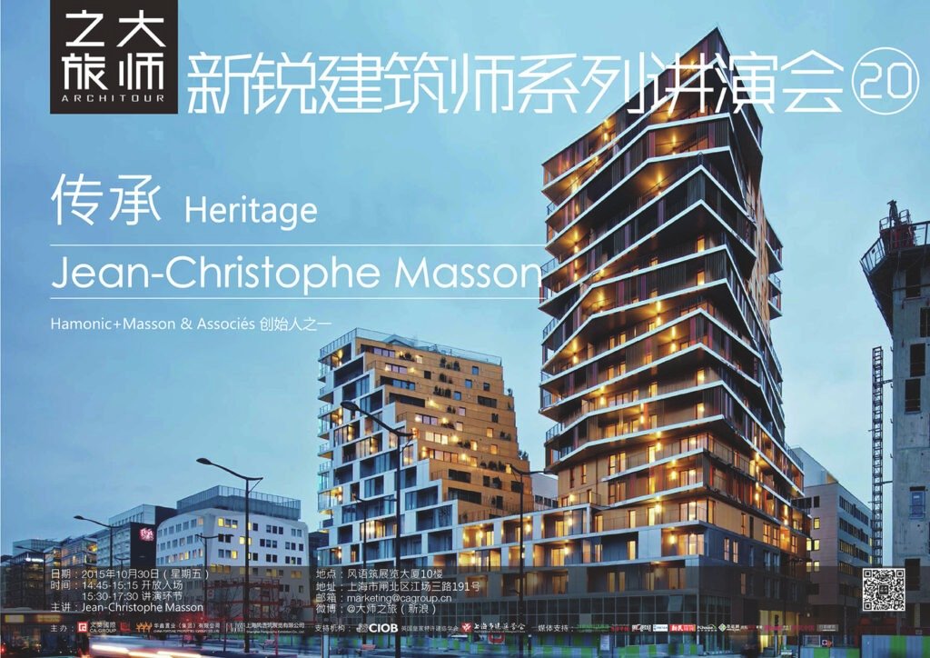 Dans le cadre de la série de conférences « Architour » du groupe CA, Jean-Christophe Masson a donné une conférence à l’Ablues Design Exhibition Auditorium à Shanghai.