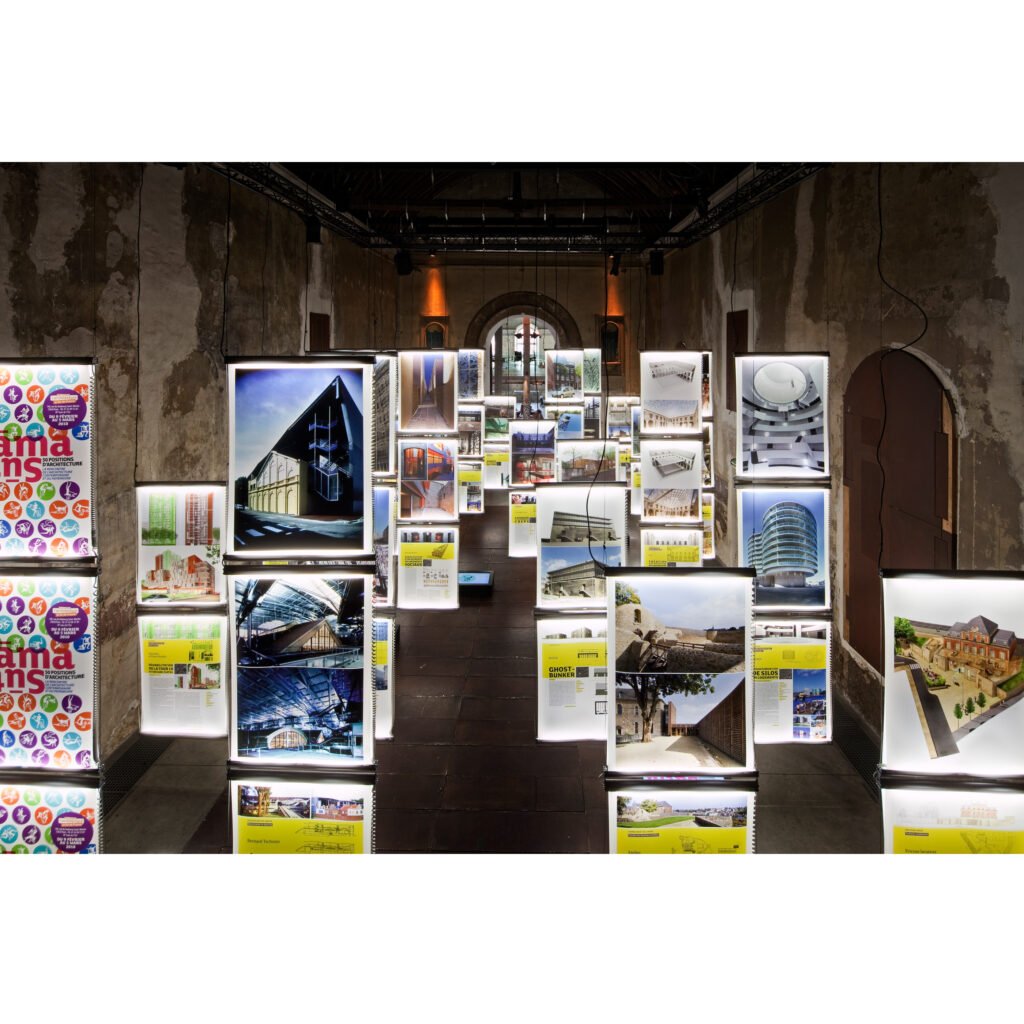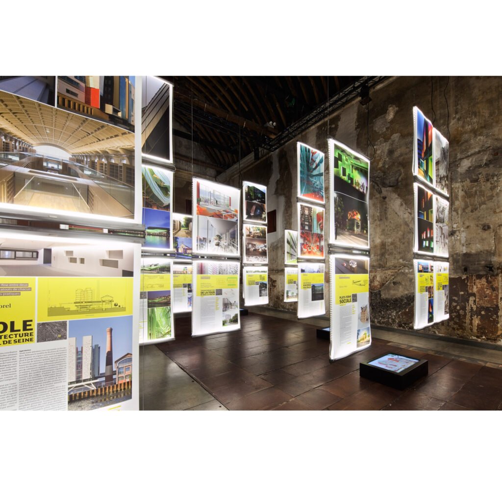 Cinquante projets de réhabilitation, extension, transformation étaient présentés en images et en textes sur des kakémonos, suspendus dans la chapelle du couvent des Récollets et éclairés par des cadres de néon.