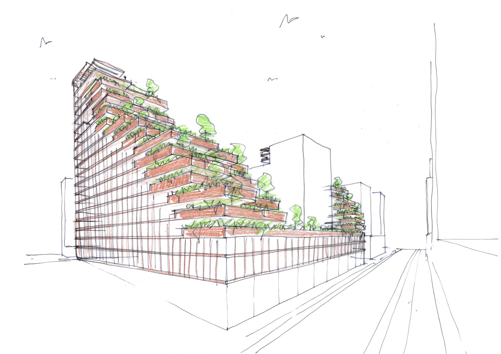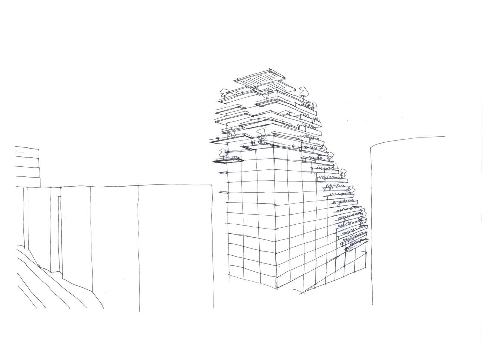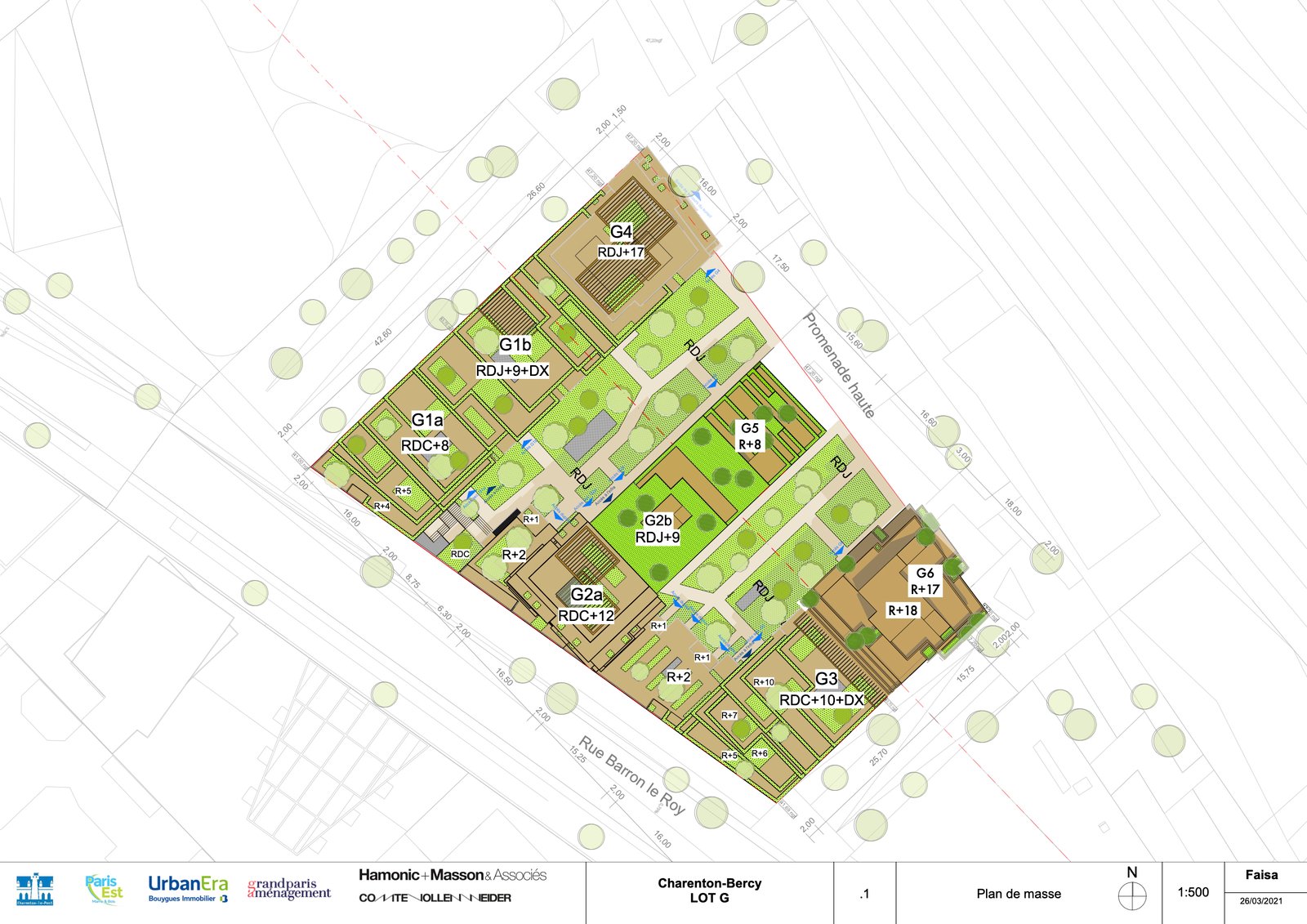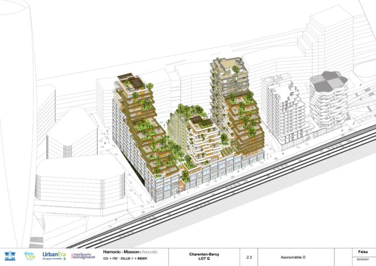 Situé au cœur de l’opération Charenton-Bercy, le lot G relie ainsi deux éléments constitutifs du site : le bois de Vincennes et la Seine. L’accent est mis ici sur la continuité paysagère de la parcelle vis-à-vis de son environnement proche. Grâce à son emplacement, il ponctue cette organisation et renforce la densité végétale à tous les niveaux du projet. Le bâtiment devient ainsi un morceau de territoire extrudé, un paysage en hauteur, dans lequel une nature indigène se développe librement à l’abri.