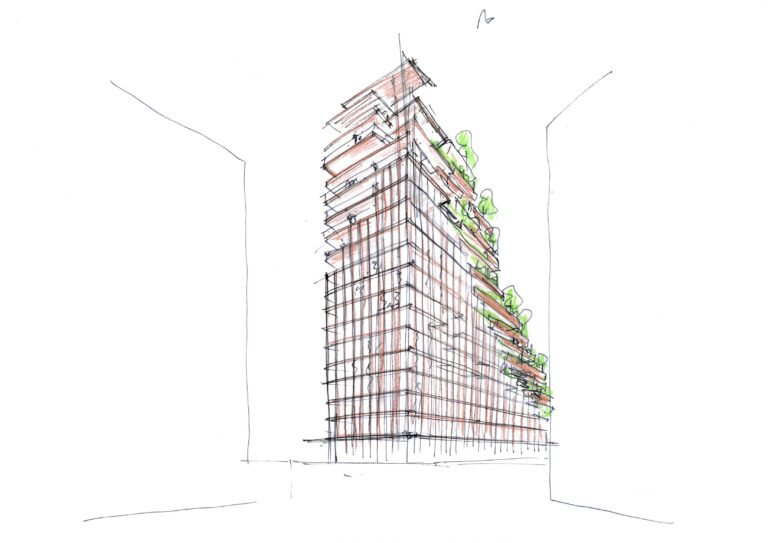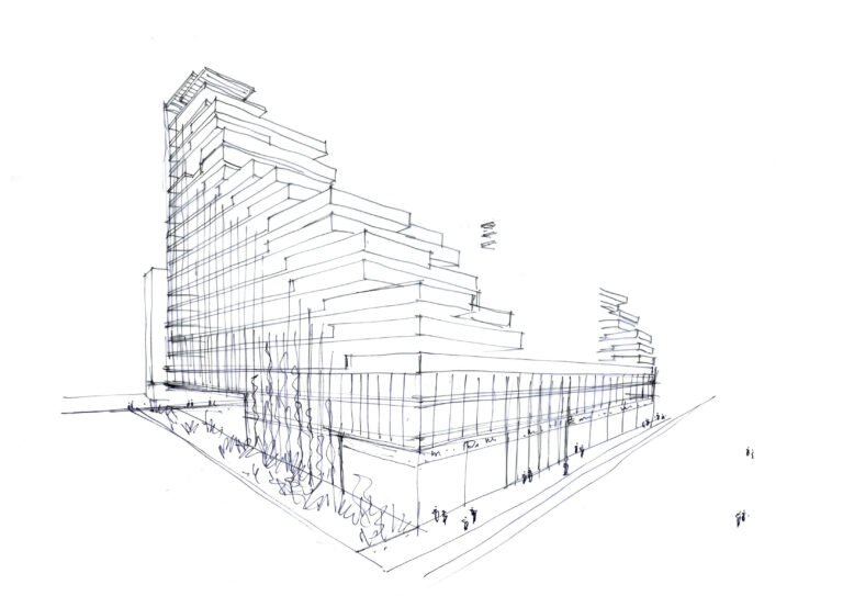Avec une hauteur intermédiaire de 50 mètres, cet îlot devient ainsi un lieu d’observation et de respiration, offrant une expérience architecturale en cinémascope.