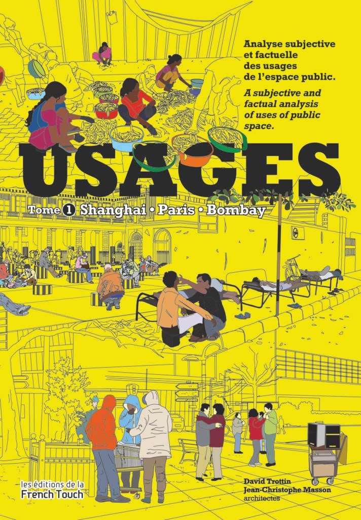 Read more: USAGES Shanghai – Paris – BombayBased on long walks in various neighbourhoods taking thousands of photographs, we have redrawn a selection of street scenes. Drawing is an effective way of spatially and hierarchically organising interpretations of urban use. This book is a compilation of three studies carried out between March 2010 and April 2011. The Shanghai and Mumbai Observationswere carried out in the framework of our teaching programme with students of the École Nationale Supérieure d’Architecture in Versailles and an international exchange programme in the two cities concerned. The Paris Observation, is a study commissioned by the Agence Parisienne D’Urbanisme as part of its research on public space.
