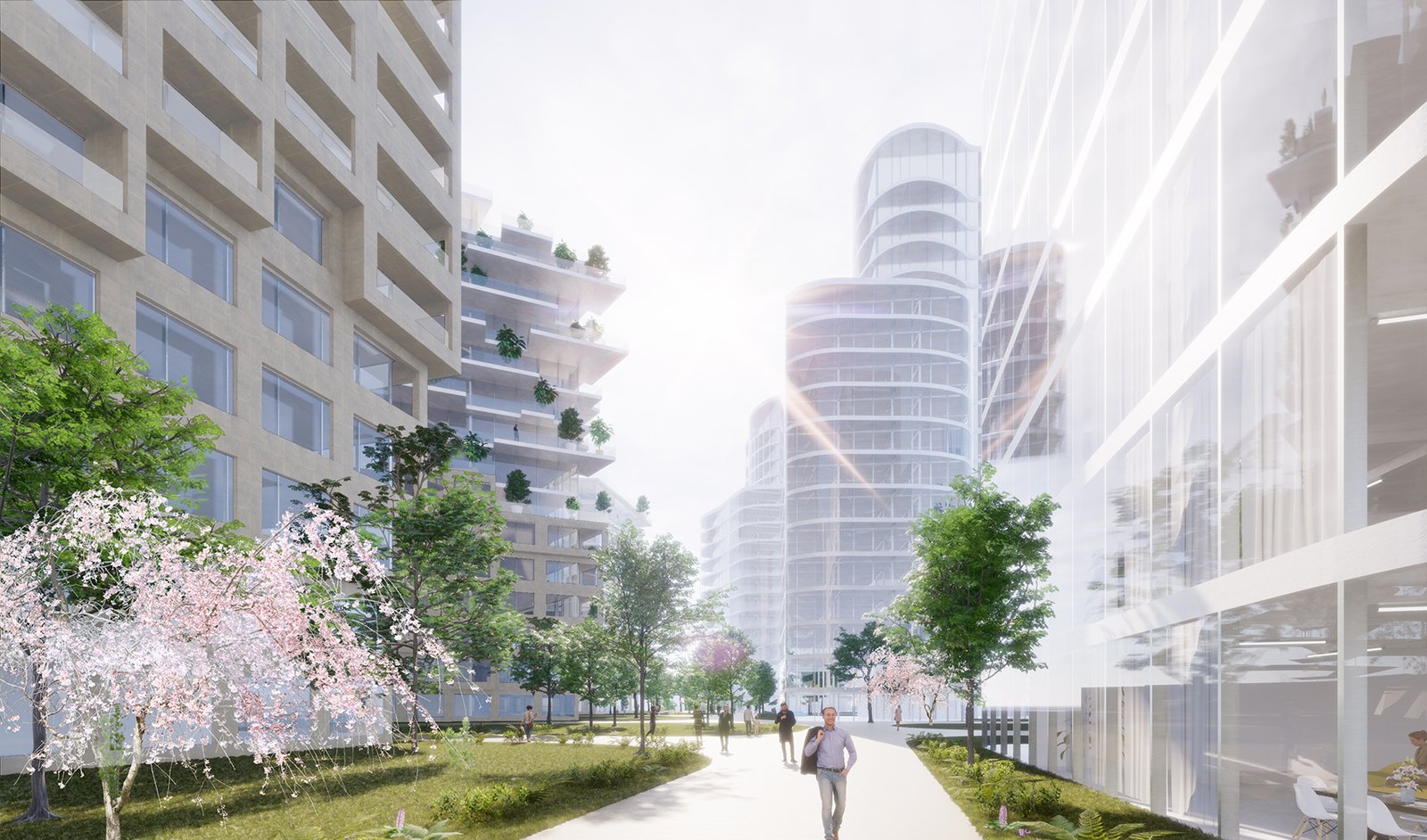The second line combines the mineral and the green, robustness and sensitivity, elements which embody the ambition of this new district.