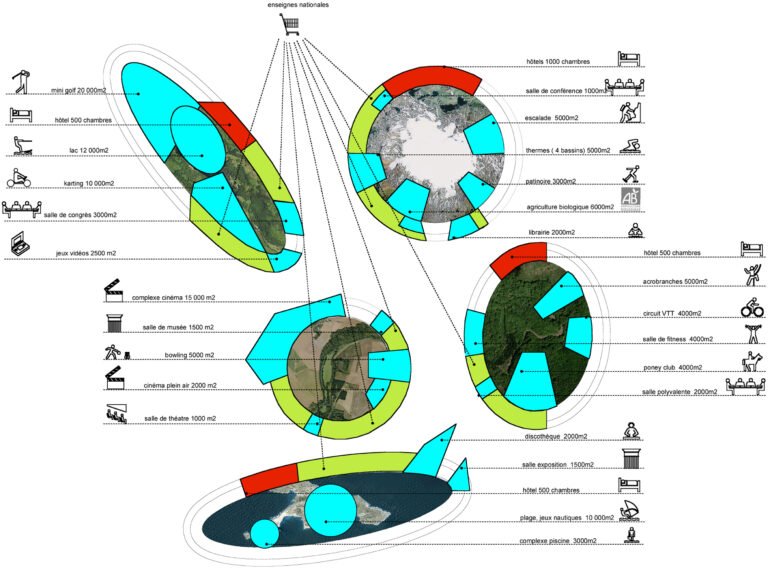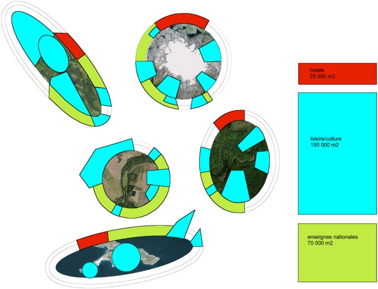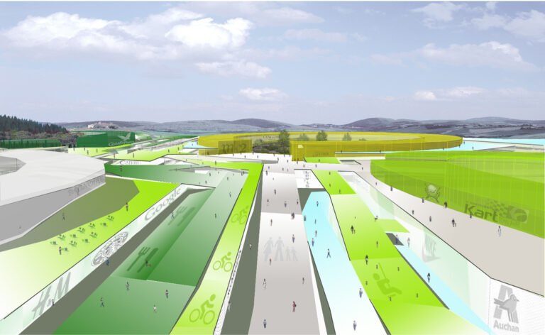 250,000 m² of retail + 150,000 m² of leisure + 30,000 m² of hotel-restaurants + 182,000 m² of green spaces + 187,500 m² of landscaped car parks