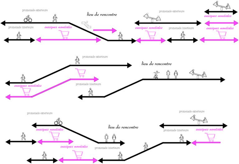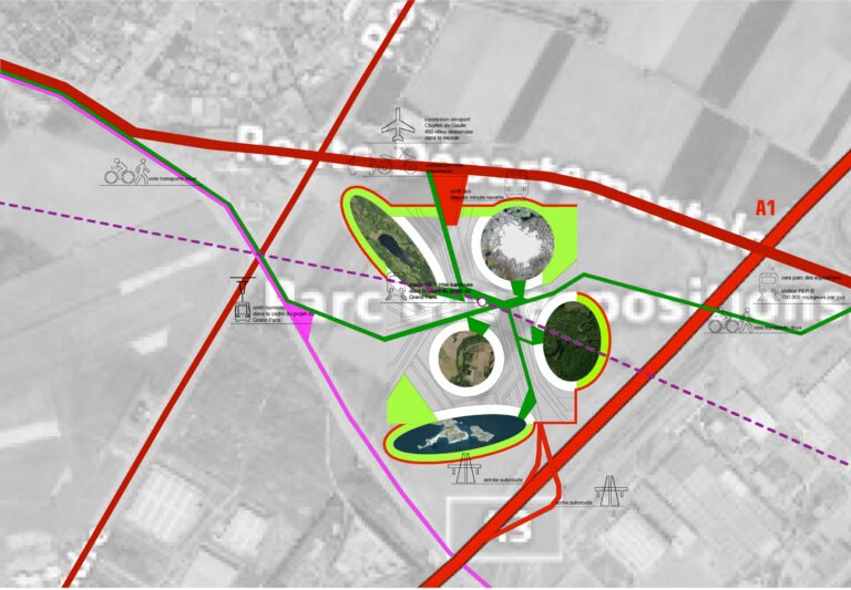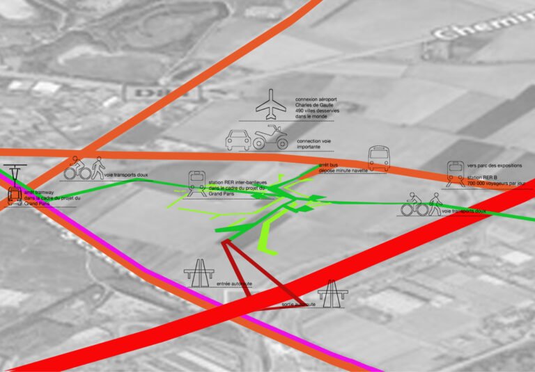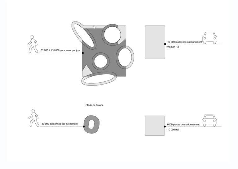 Read more: Europa CityThe soil is the structuring element of the project. It covers and contains, binds, deforms and becomes a meeting place. In reality, it stages the different scales of the project.