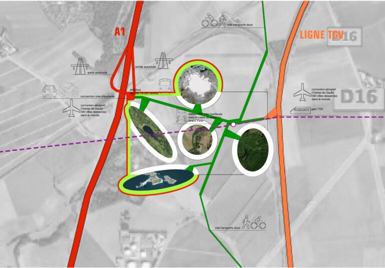 It is therefore a planning tool. An open scenario. A space of transition between urban, peri-urban and agricultural situations. A bridge connecting two pieces of territory cut by infrastructure.