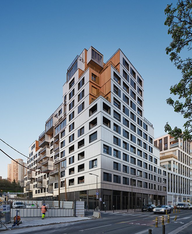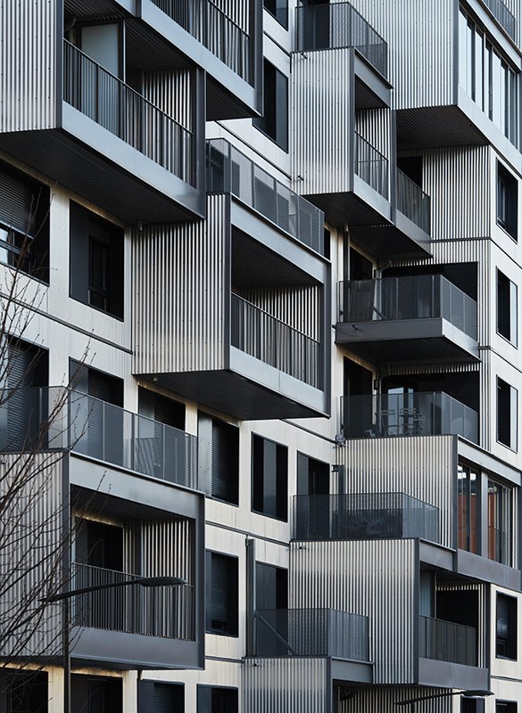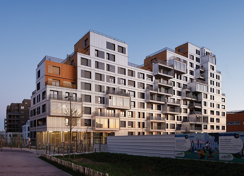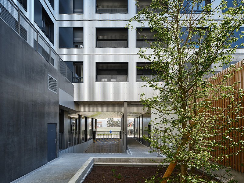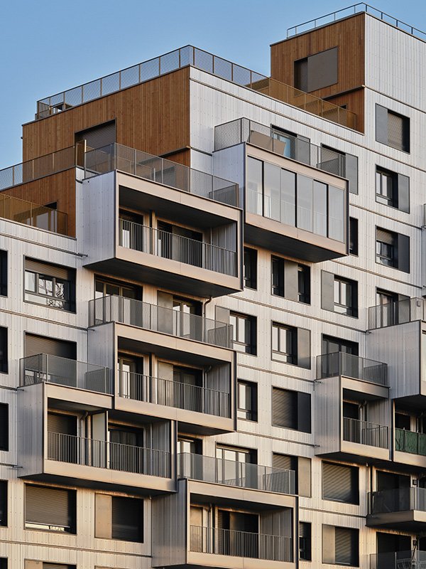The particular writing of the project was a vector of constructive innovation in accordance with contemporary housing issues. The facades used wooden frame walls (MOB), a process which makes it possible to meet demanding thermal criteria and reduce the carbon footprint of the building. The implementation of MOB facades matches wooden or aluminum cladding and reflects the attention paid to recycling and end-of-life conditions for buildings. In addition, specific structural means were used for the exterior spaces, balconies and loggias suspended by tensioned cable structures decline the dry construction techniques implemented in this project. These different constructive choices reflect the agency’s reflections on ecological issues in housing and on the necessary transformation of housing production practices.