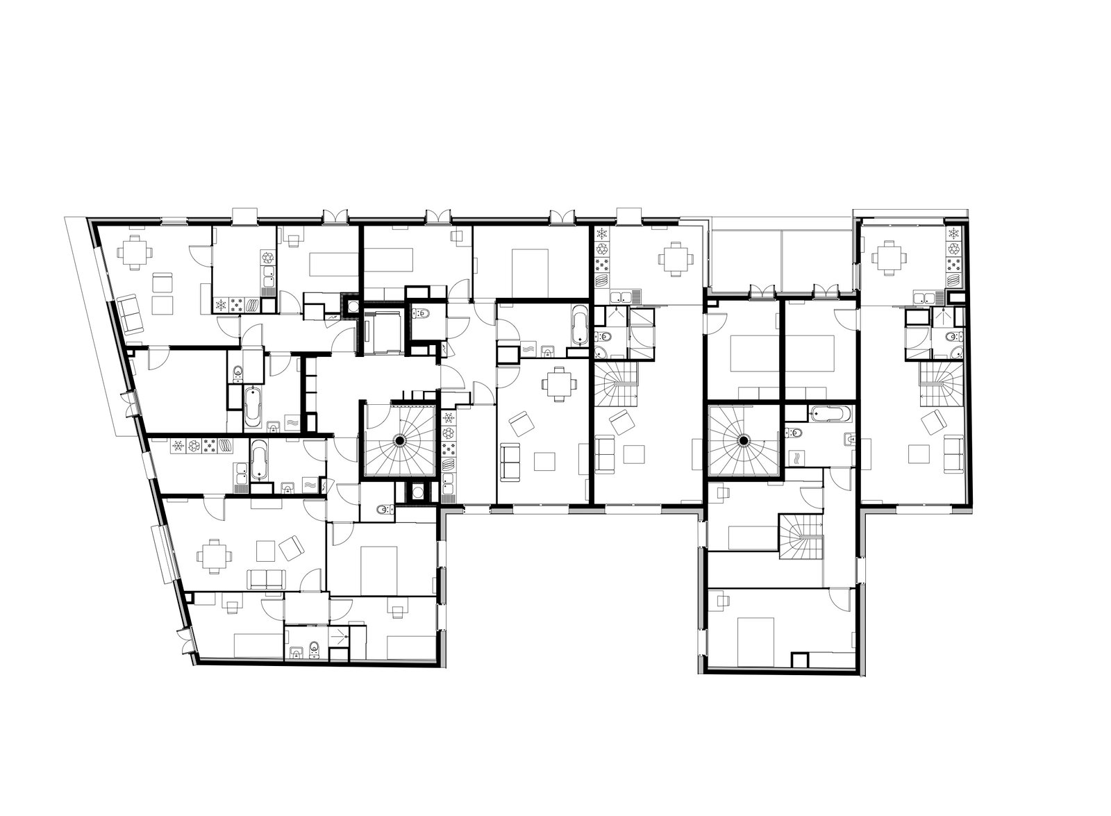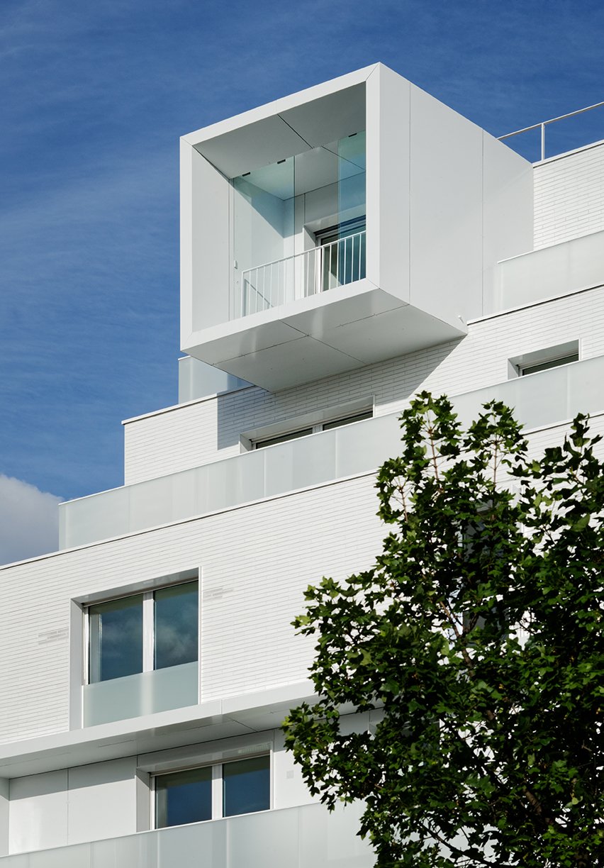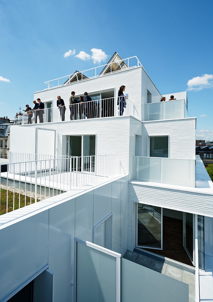The work on the skyline allowed us to vary the building’s silhouette and also make use of roof space. It offers the neighbours a view of differing scales and levels, as well as providing some diversity for the inhabitants.