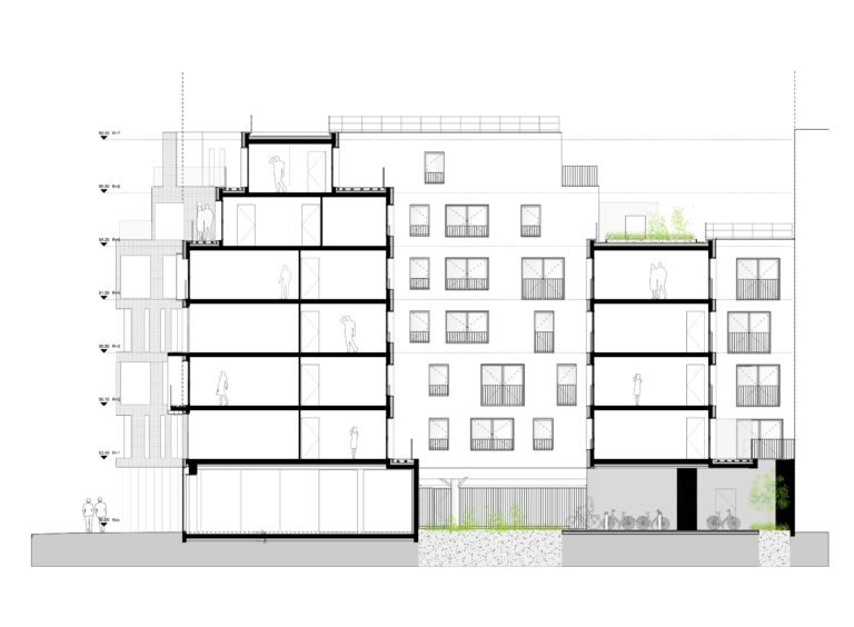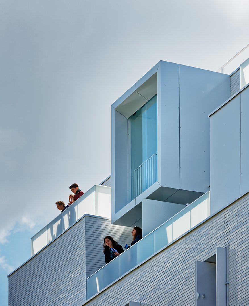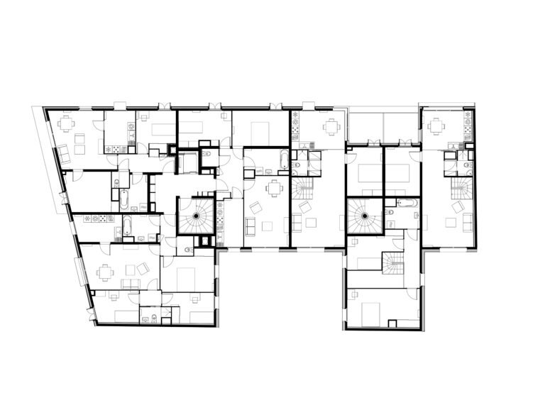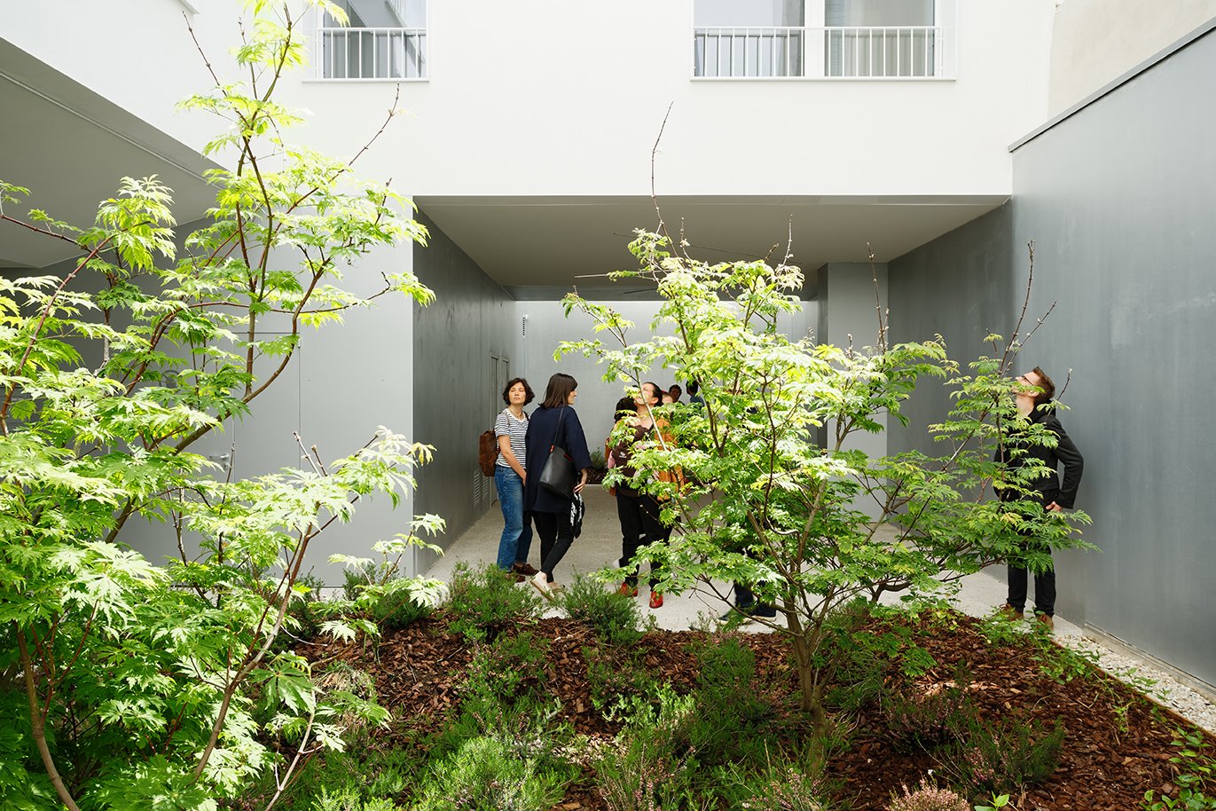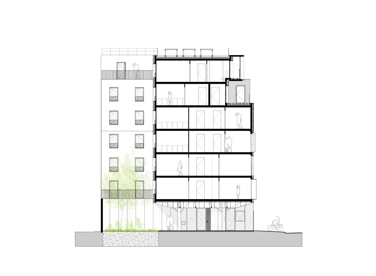 The work on the skyline allowed us to vary the building’s silhouette and also make use of roof space. It offers the neighbours a view of differing scales and levels, as well as providing some diversity for the inhabitants.
