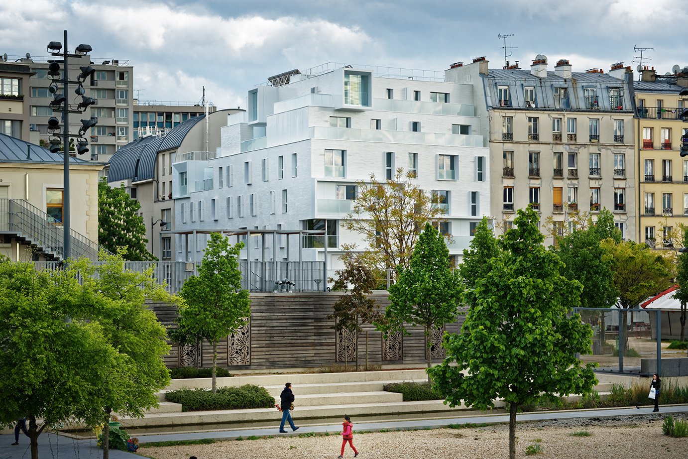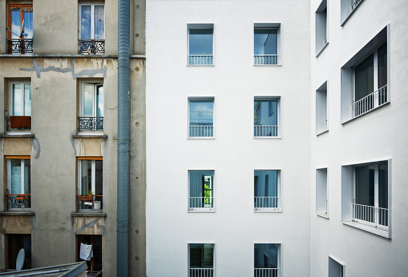 Rue d’Aubervilliers used to be a run down area but it has recently undergone huge redevelopment. In the dense urban tissue of Parisian housing, this building’s individuality means it stands out from its surroundings.