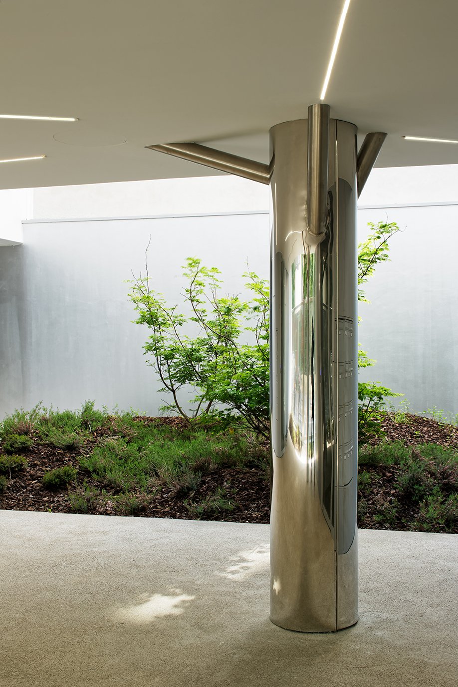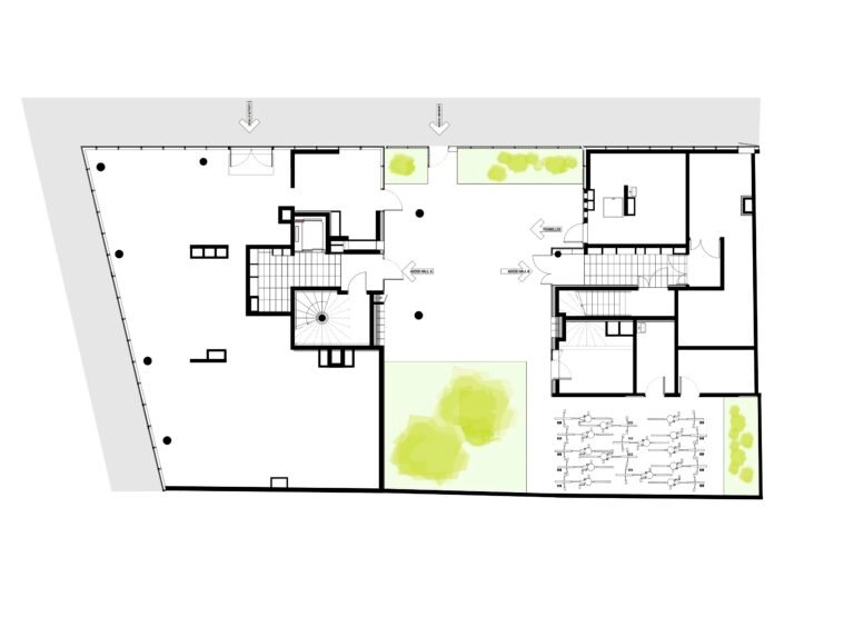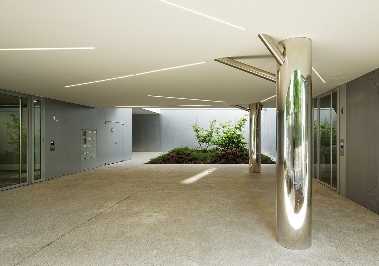 The entrance is presented in a way that gives the impression of an interior extension of the public street. This vast ‘exterior’ communal space is home to the letterboxes and bikes, and reveals the depth of the plot whilst making the area attractive.