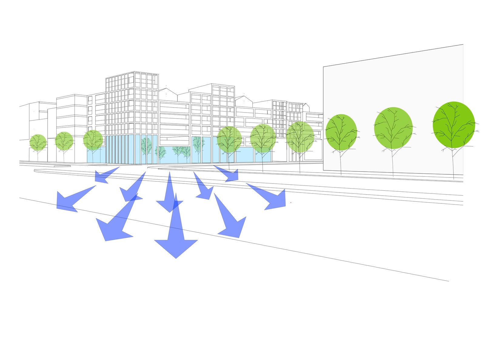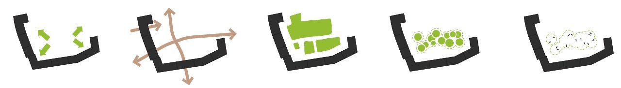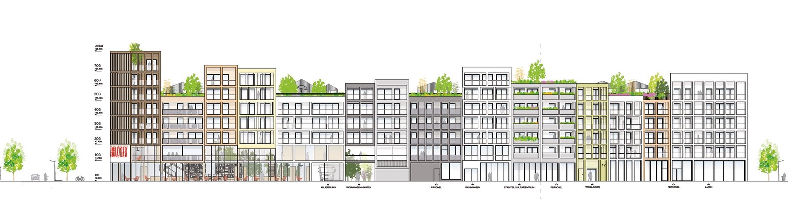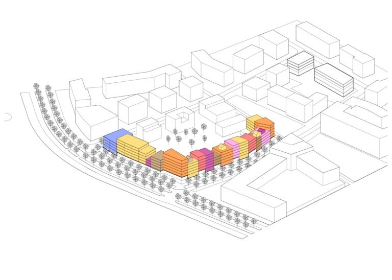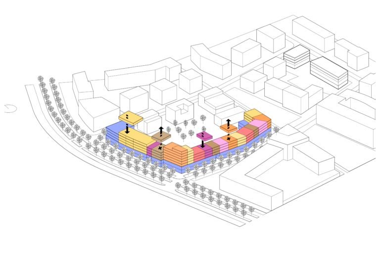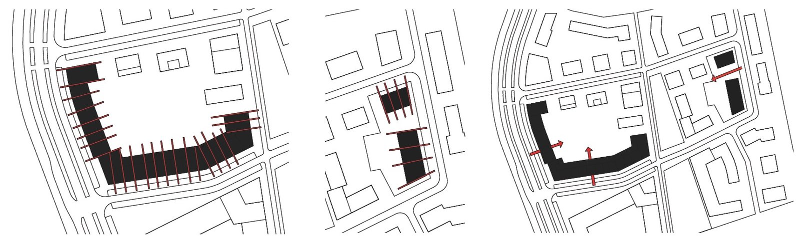 Le concept du projet est défini par la conception architecturale des bâtiments comme un espace urbain d’expérience. À l’instar d’une promenade, on peut se sentir chez soi grâce à la diversité de la forme du bâtiment et de son utilisation. Le nouveau quartier a été conçu afin d’incorporer les mémoires collectives et de les transformer jusqu’à ce qu’elles se dissolvent en gestes familiers, structures reconnaissables et directions uniques.