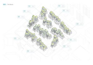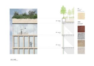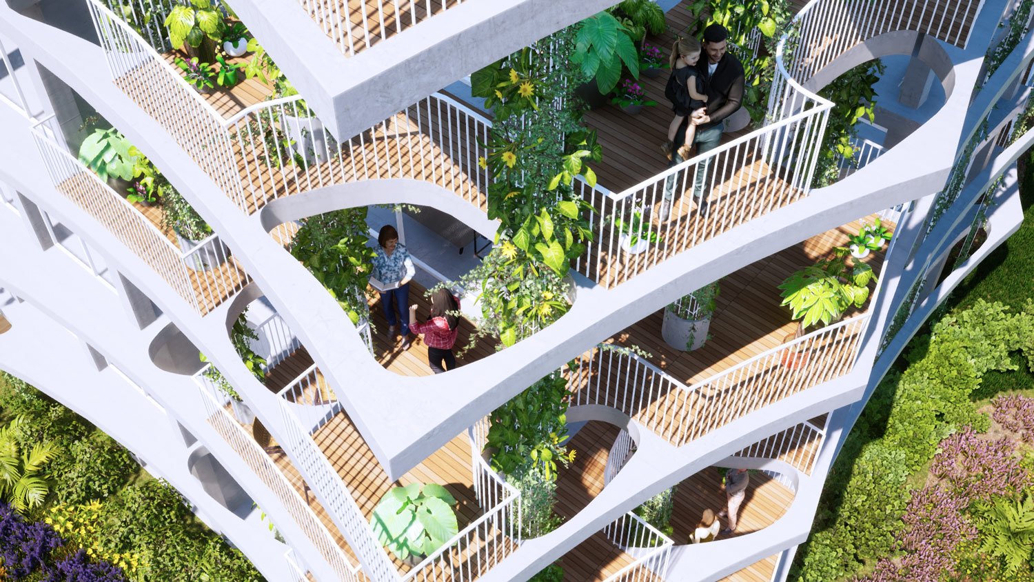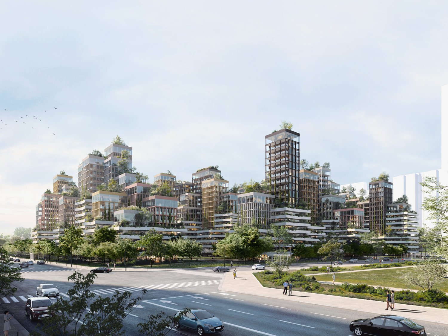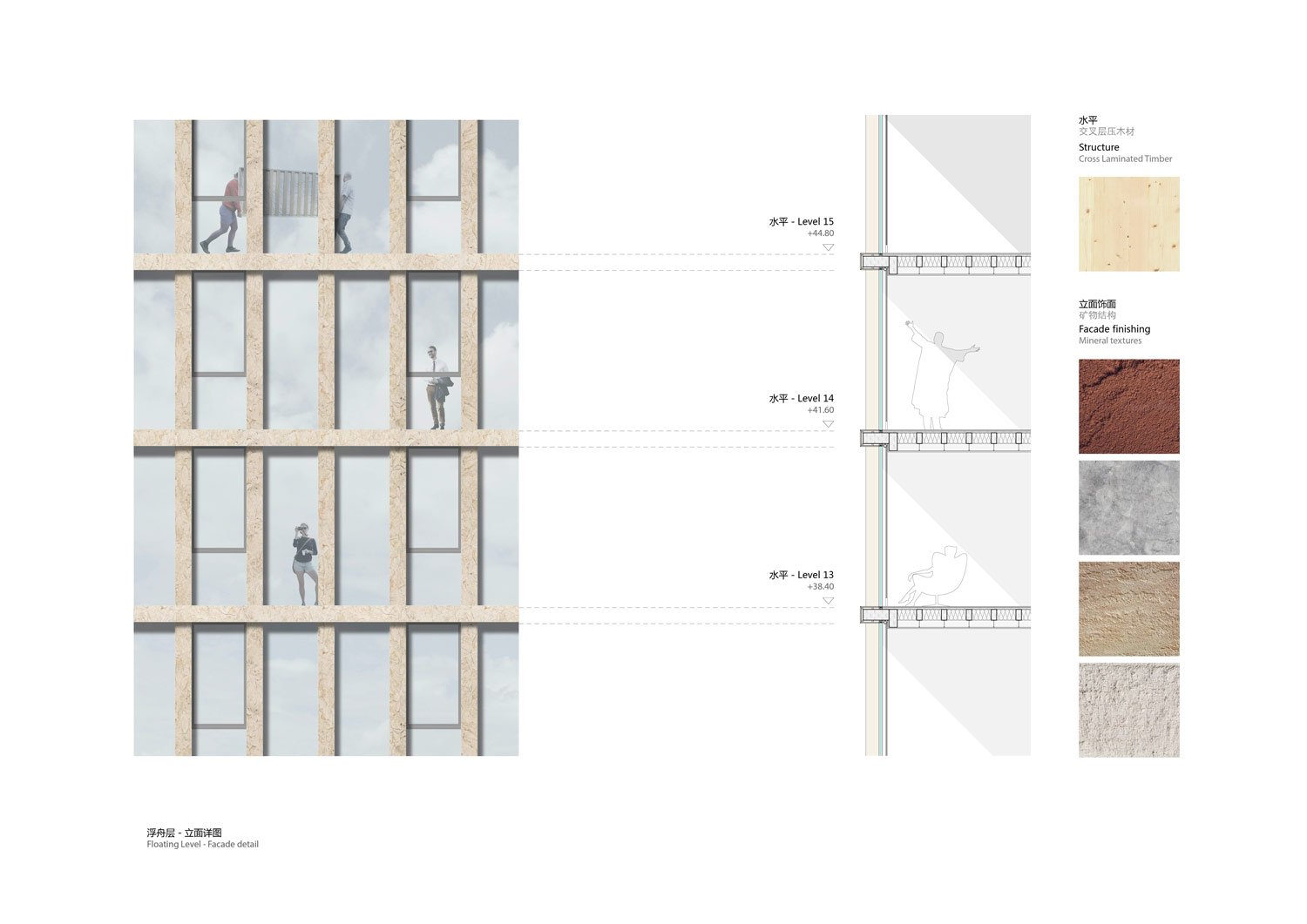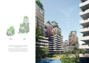 L’architecture sera composée de 3 strates, qui représentent : la ville du vent, la ville flottante et la ville de la terre. Chaque strate possède des spécificités et des identifications qui correspondent aux usages de ses futurs habitants. Le site sera largement végétalisé, le paysage fait office de séparation naturelle entre public et privé.