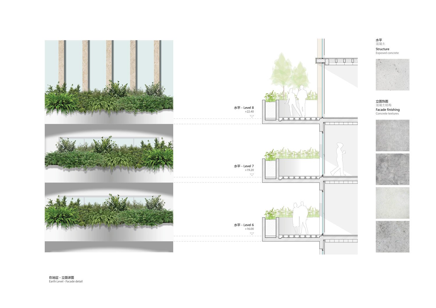 Façonné par la géologie chinoise multiforme, notre projet fait écho aux beautés naturelles du pays tel que la rivière Young, le mont Zhangjiajie ou encore le mont Huang. La relation entre le plein et le vide est définie par la nature en raison de l’érosion de la rivière. La forme matérielle est définie par les références naturelles et symboliques ; le paysage naturel de la région inspire un langage et un rythme sinueux au sein de ce quartier.