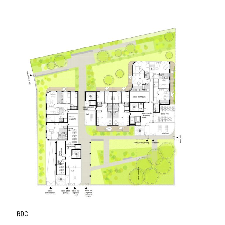 Choyer les habitants, des programmes collectifs avec des typologies variées, des espaces extérieurs généreux a toujours été notre préoccupation. La convivialité aussi. C’est ainsi qu’une plateforme collective vient prendre place au sein de la résidence, offrant la possibilité aux habitants de se retrouver et d’envisager un futur partagé. C’est un espace potager avec une serre qui se trouve au sixième étage. Il sera un pôle de jonction et de lien social. Nous souhaitons concevoir le projet comme un hub social, économique et culturel, qui deviendra un véritable laboratoire de nouvelles pratiques contemporaines.