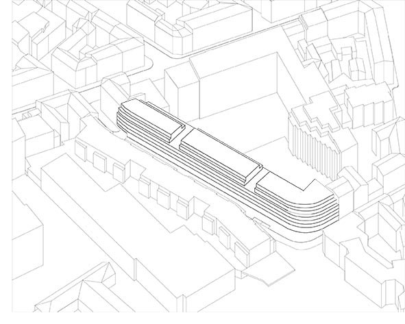 L’imbrication de tous les flux de la ville (piétons, voitures, vélos) et des divers programmes (parkings, commerces, activités, crèche, logements) sont autant de percées visuelles à rez-de-chaussée qui accompagnent le « volume du piéton ». Lieu de l’intensité, de la transparence, de la profondeur et des perspectives diverses, ce rez-de-chaussée actif enrichit la ville en offrant un caractère dynamique et vivant sur l’ensemble du périmètre du projet.