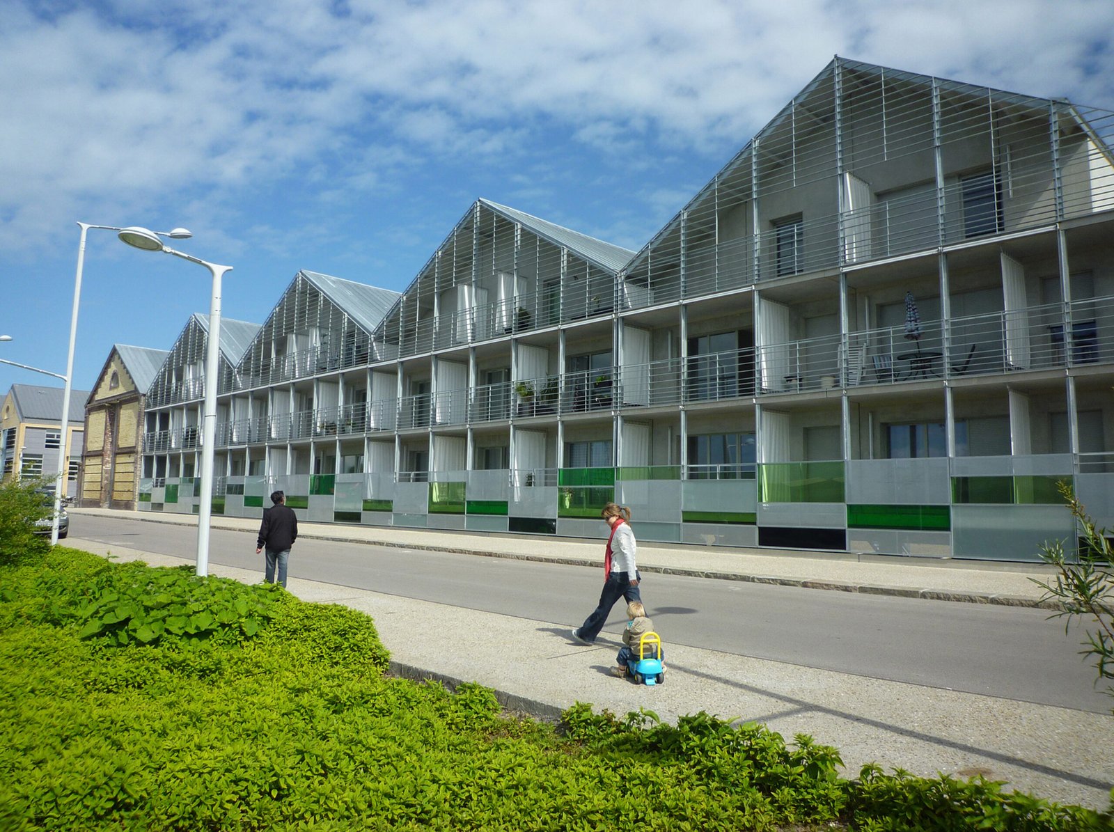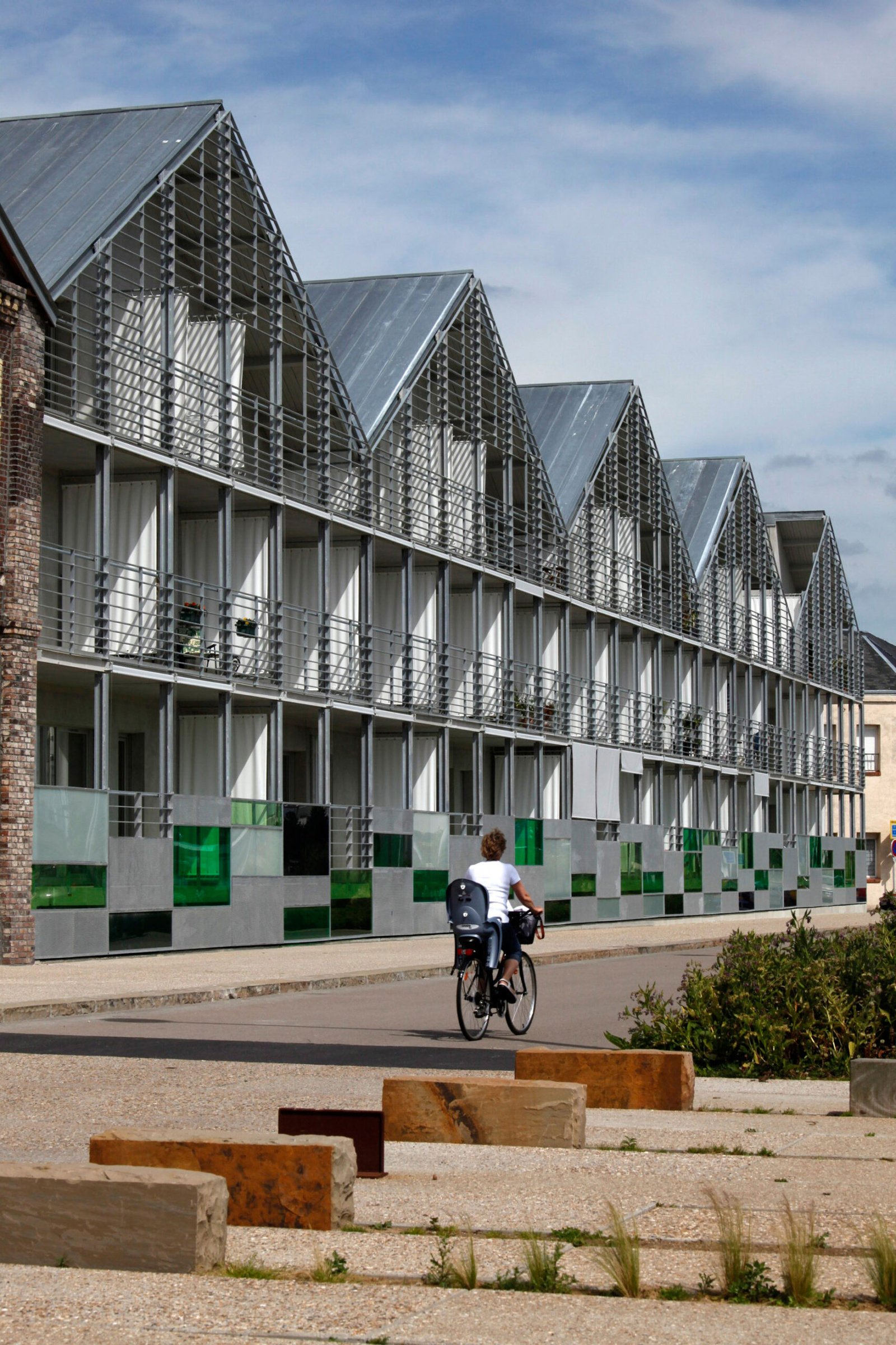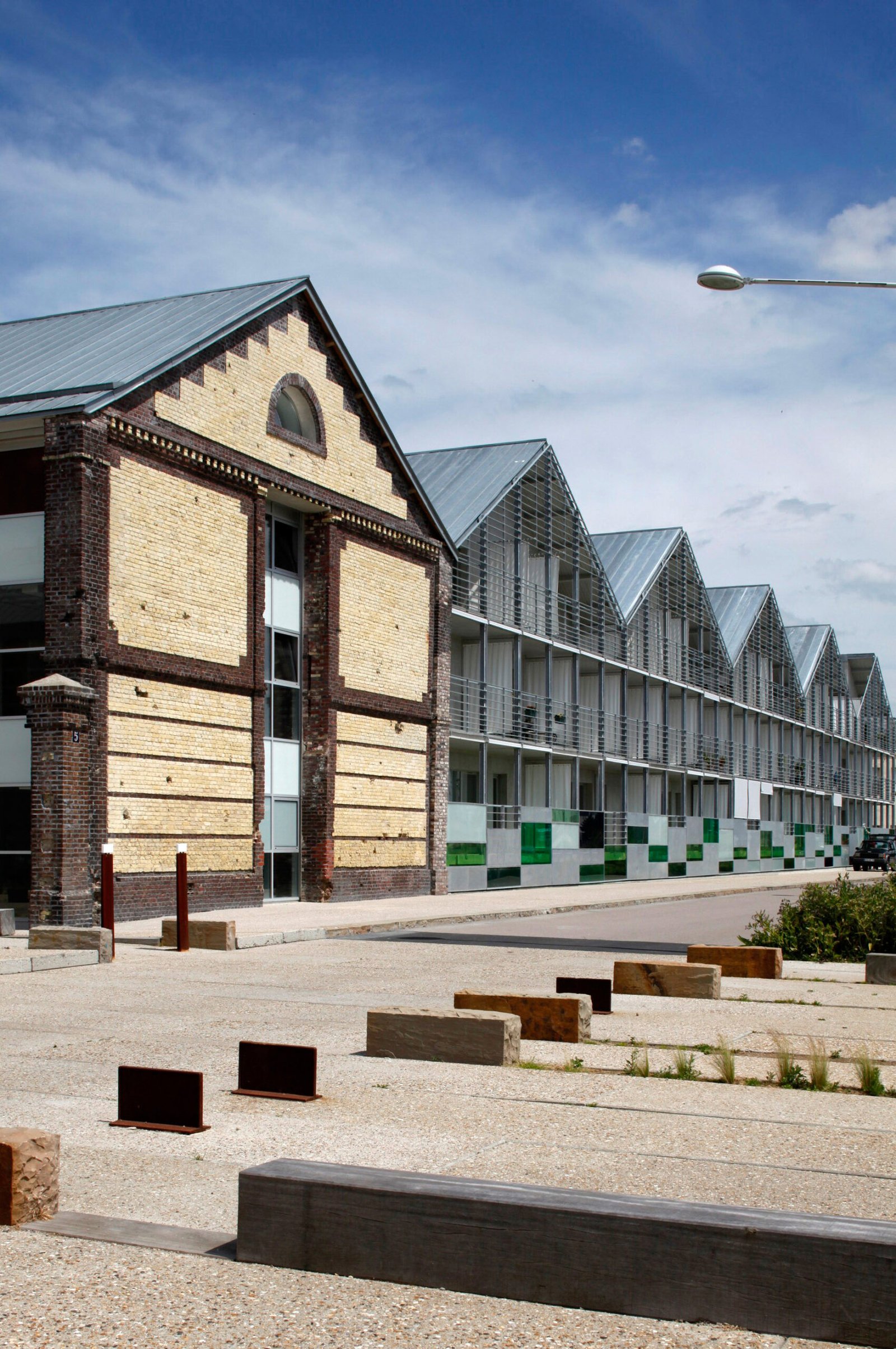 Lire la suite : Docks DombaslesÀ l’origine, un entrepôt qui avait brûlé. Nous l’avons réhabilité pour y installer les bureaux, en perpétuant l’idée du travail, même si sa substance a changé. Nous avons ensuite répété la figure de l’alvéole pour les logements installés face au bassin.