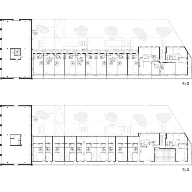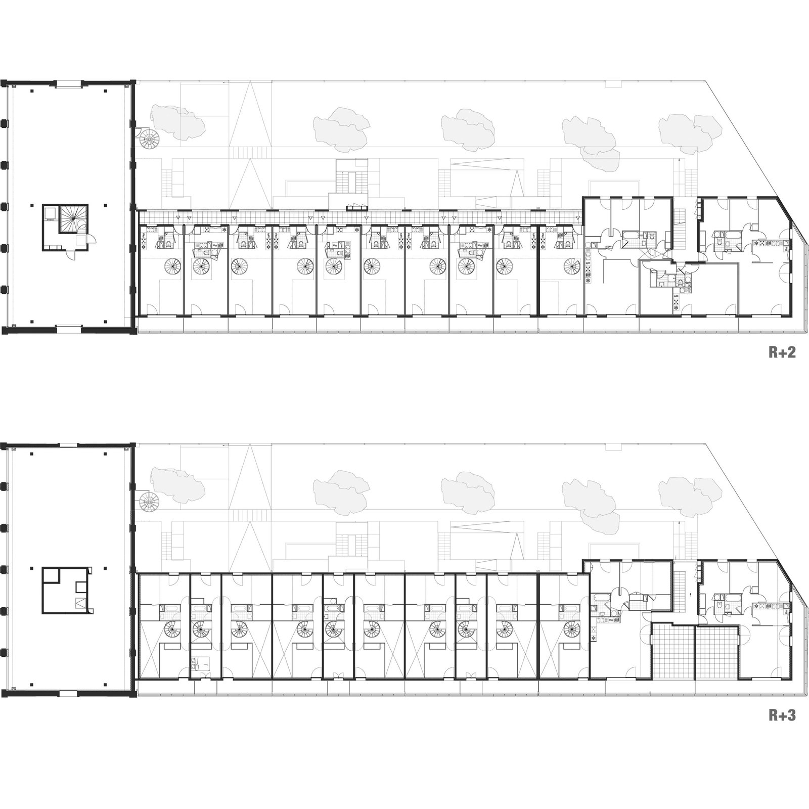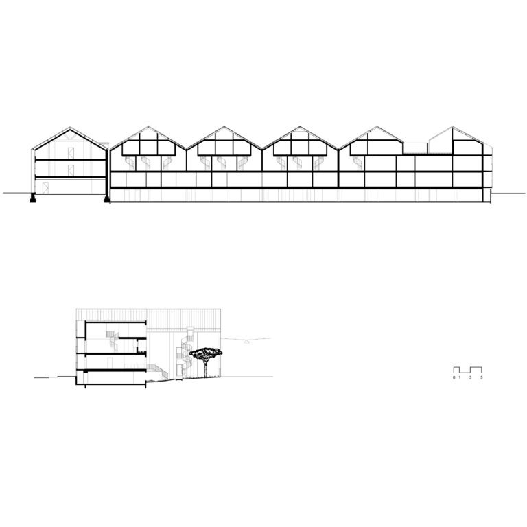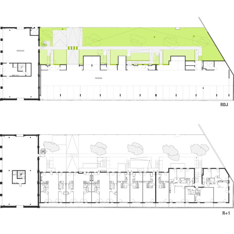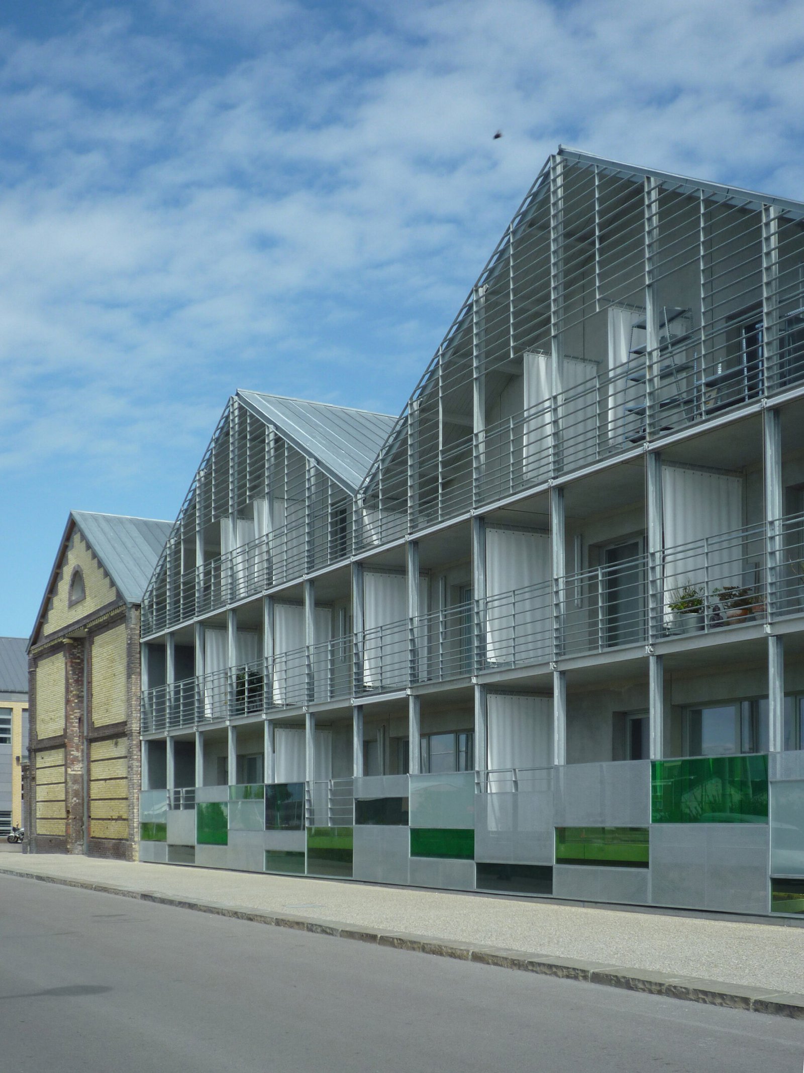 Lire la suite : Docks DombaslesÀ l’origine, un entrepôt qui avait brûlé. Nous l’avons réhabilité pour y installer les bureaux, en perpétuant l’idée du travail, même si sa substance a changé. Nous avons ensuite répété la figure de l’alvéole pour les logements installés face au bassin.