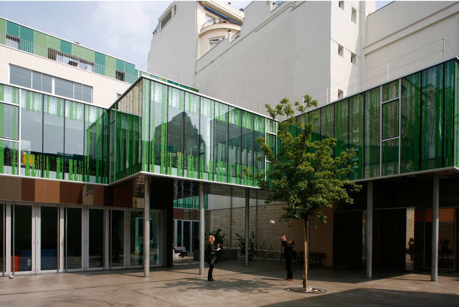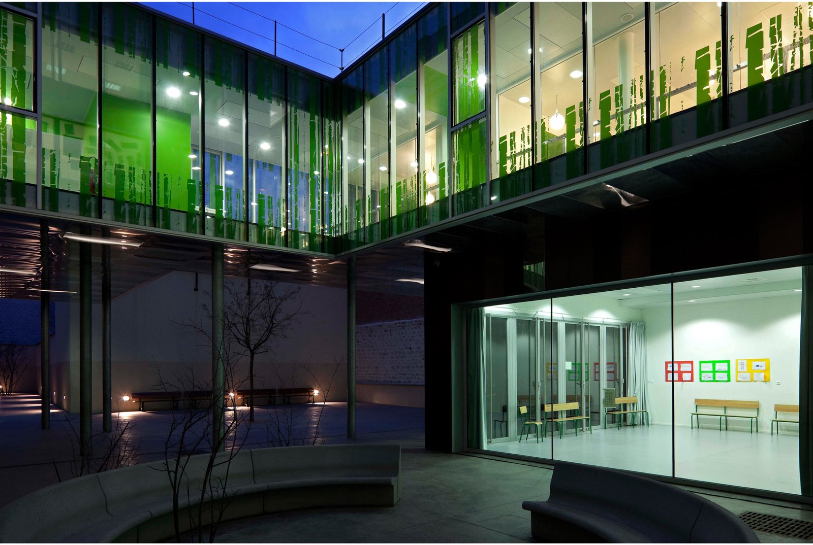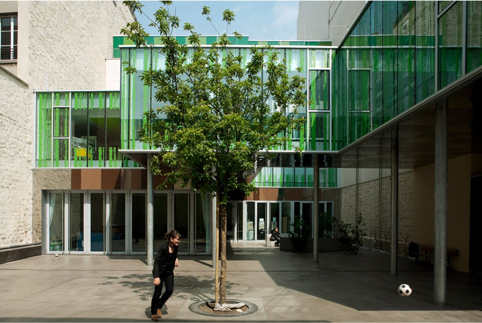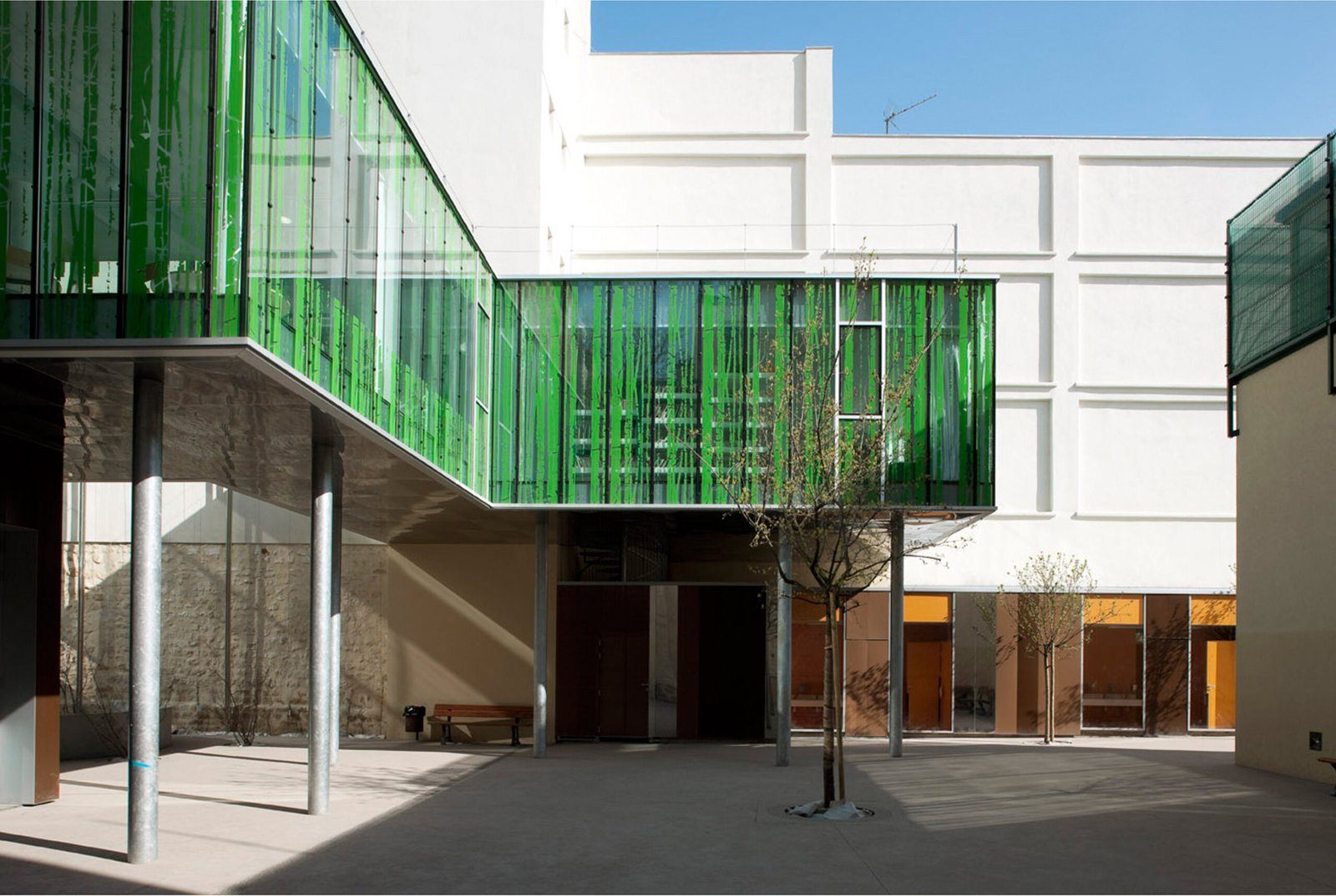 L’ordonnancement des fonctions, le patio central et la répartition des classes entre la cour et la rue emmènent les usagers vers la lumière. Ils dégagent un horizon gagné de haute lutte.