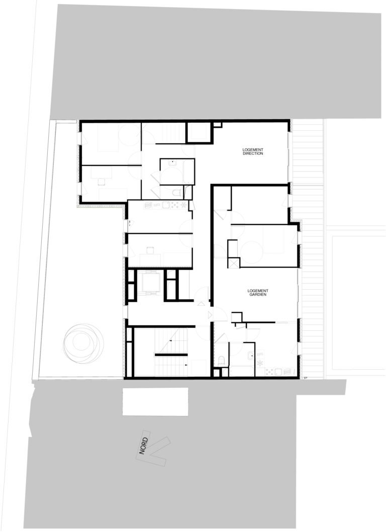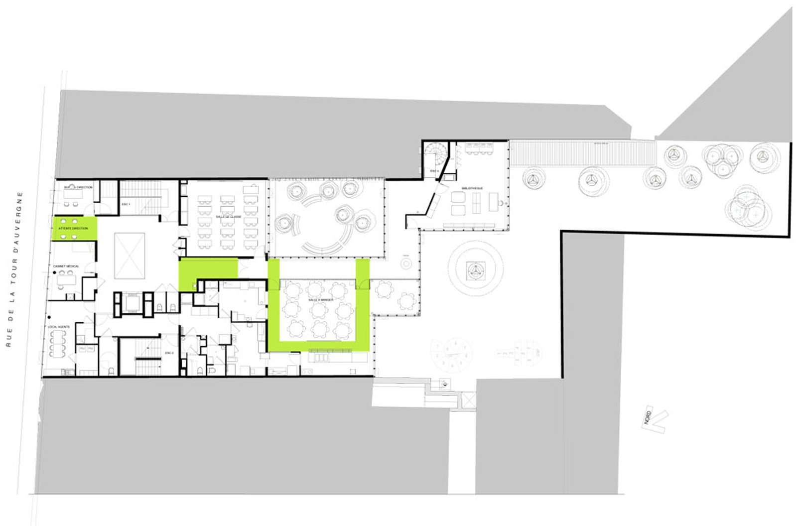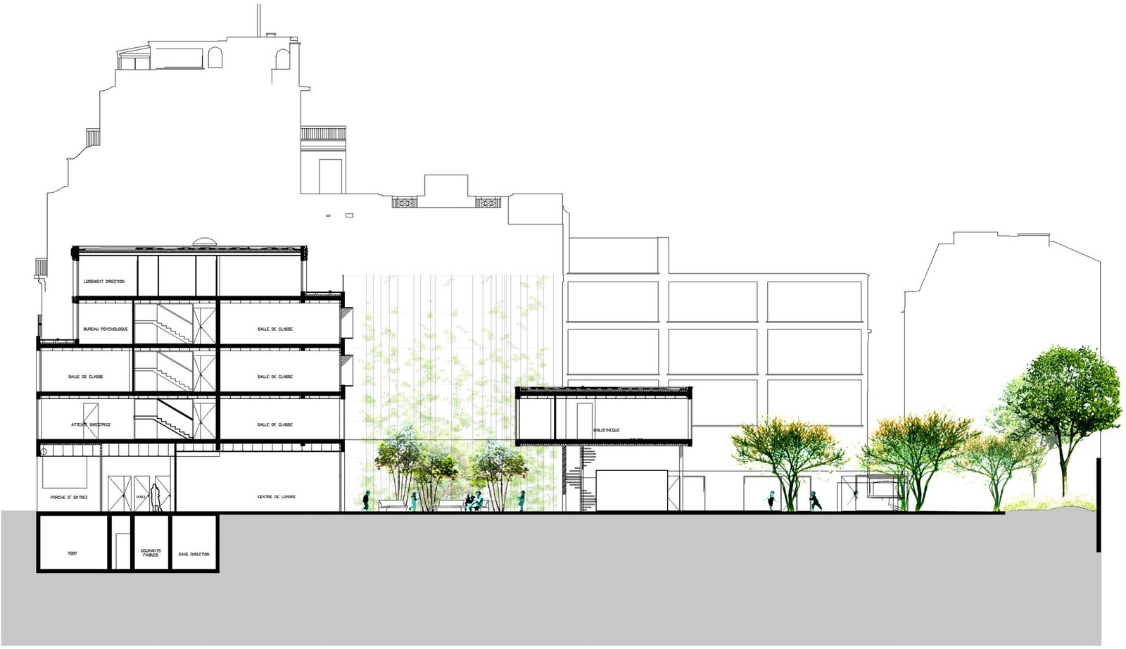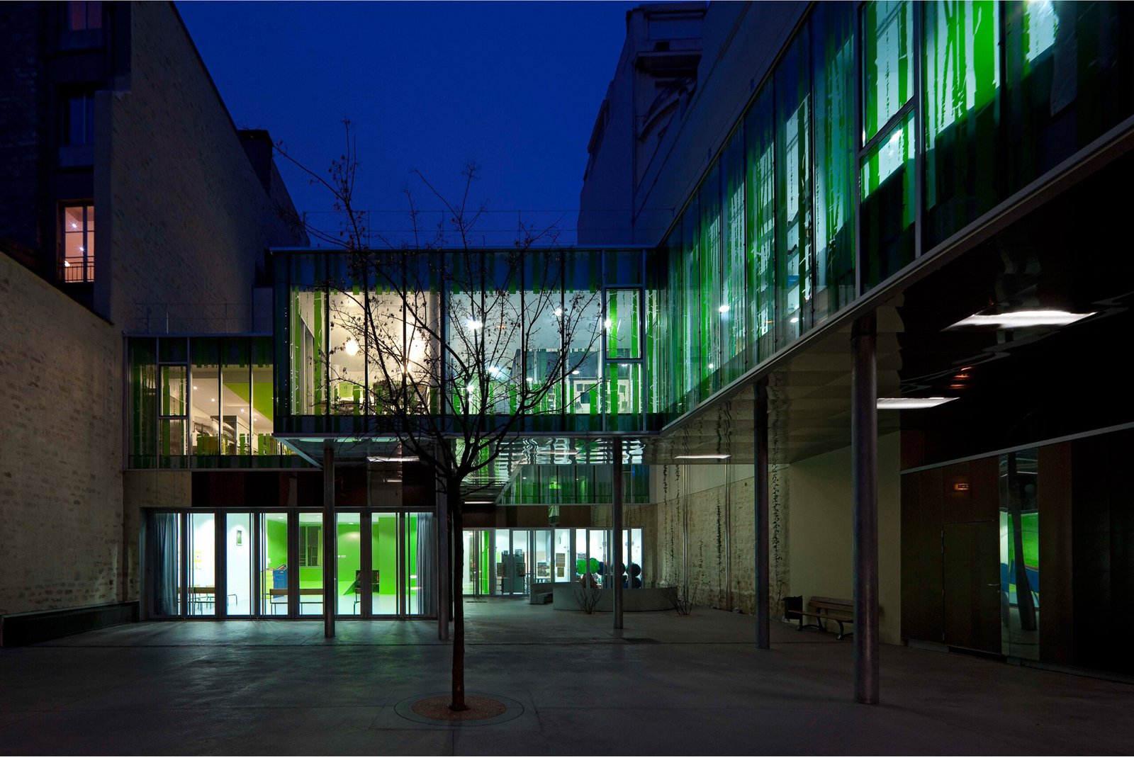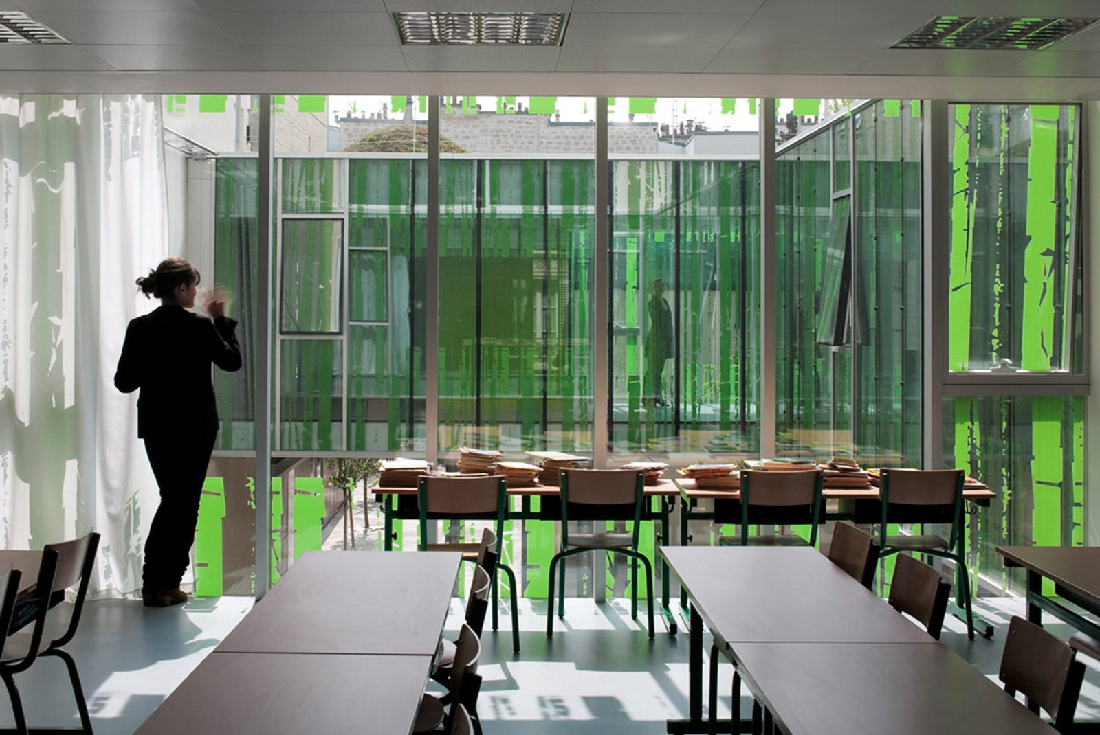L’ordonnancement des fonctions, le patio central et la répartition des classes entre la cour et la rue emmènent les usagers vers la lumière. Ils dégagent un horizon gagné de haute lutte.