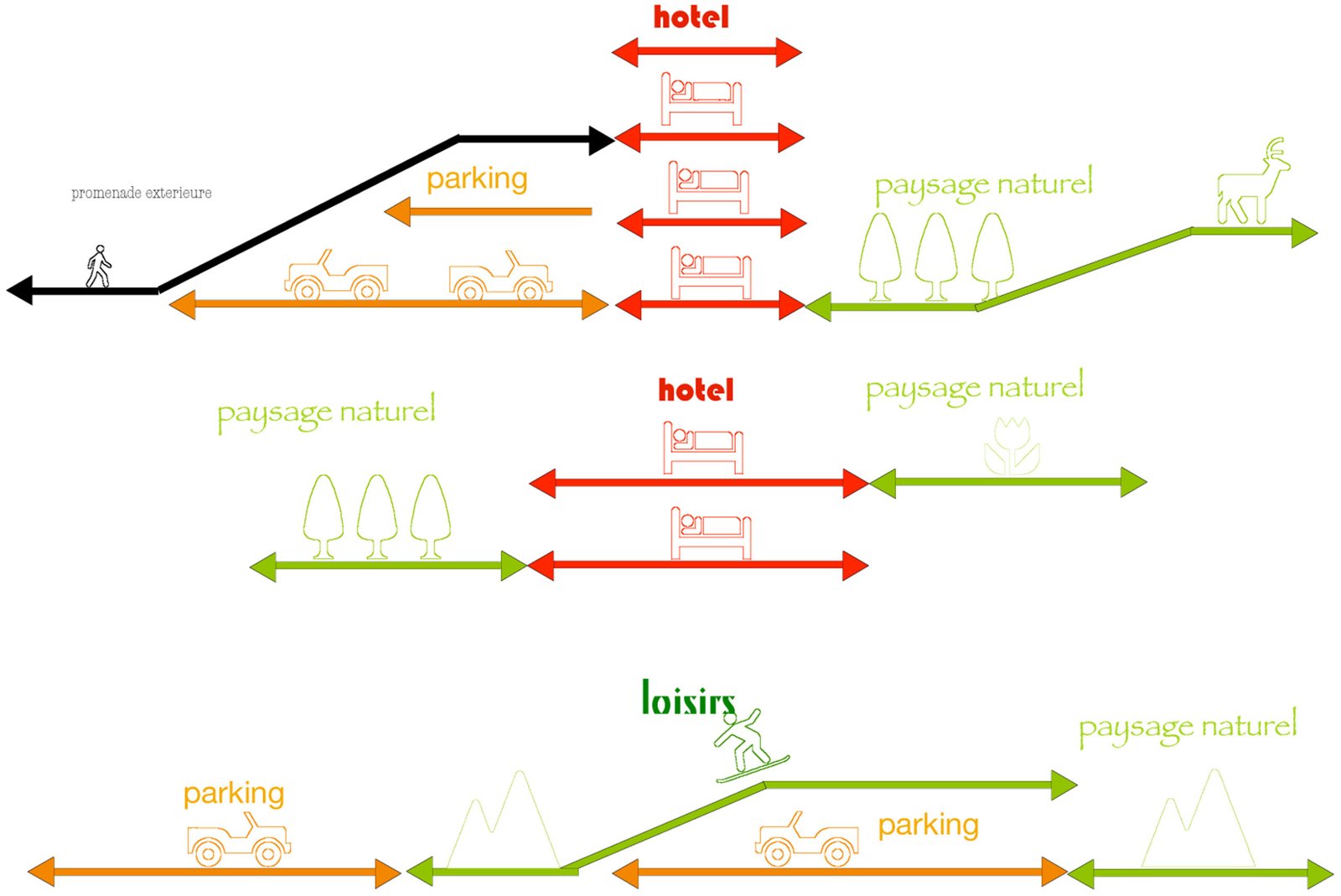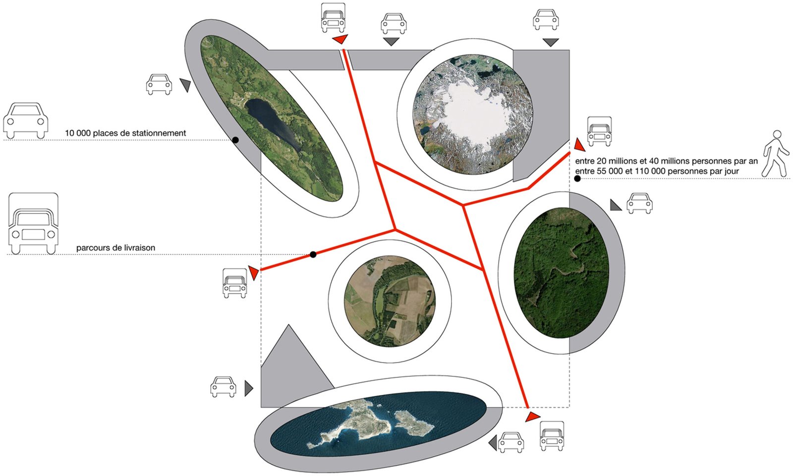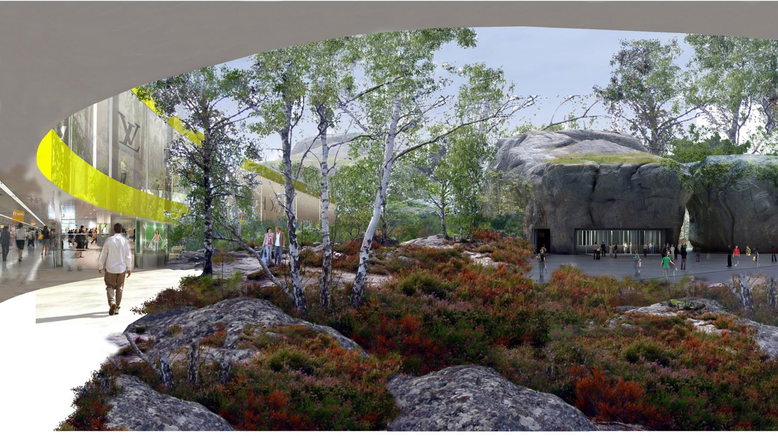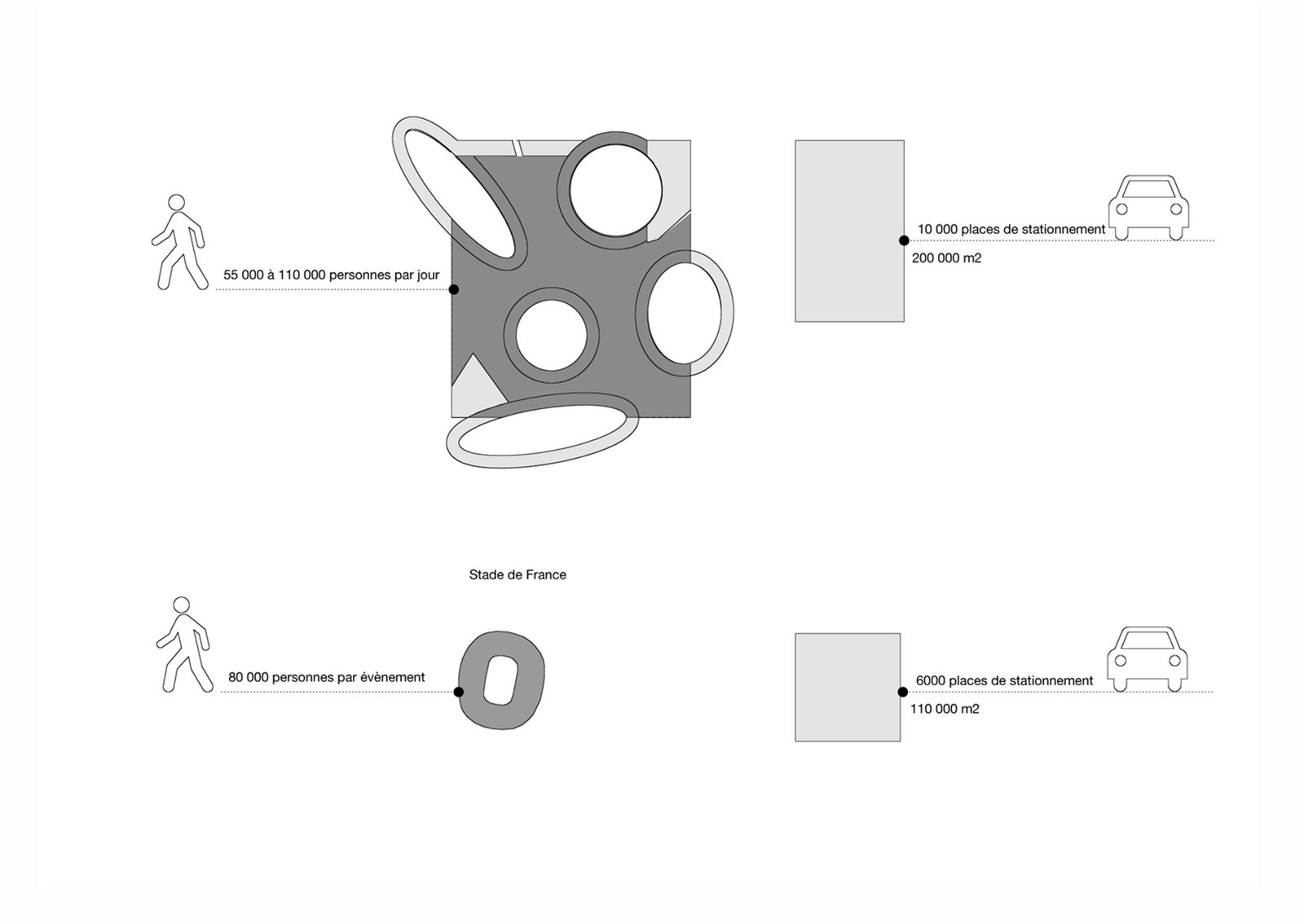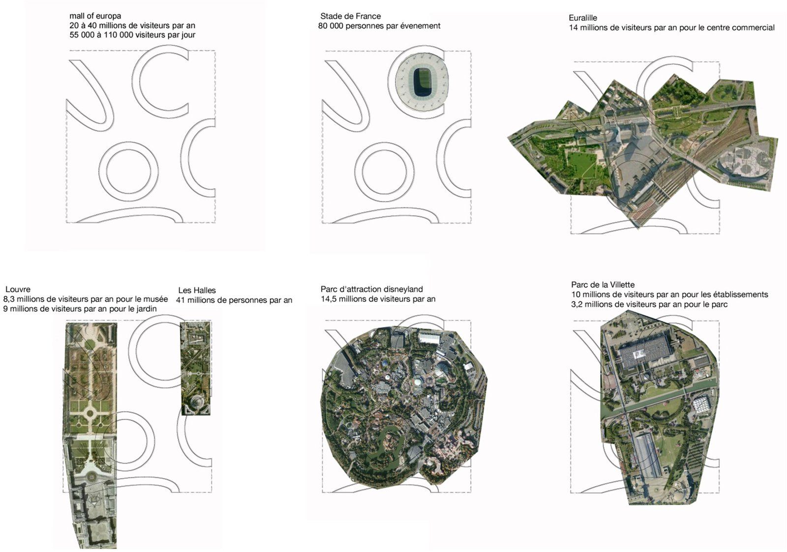 250 000 m² de commerces + 150 000 m² de loisirs + 30 000 m² d’hôtels+restaurants + 182 000 m² d’espaces verts + 187 500 m² de parkings paysagers