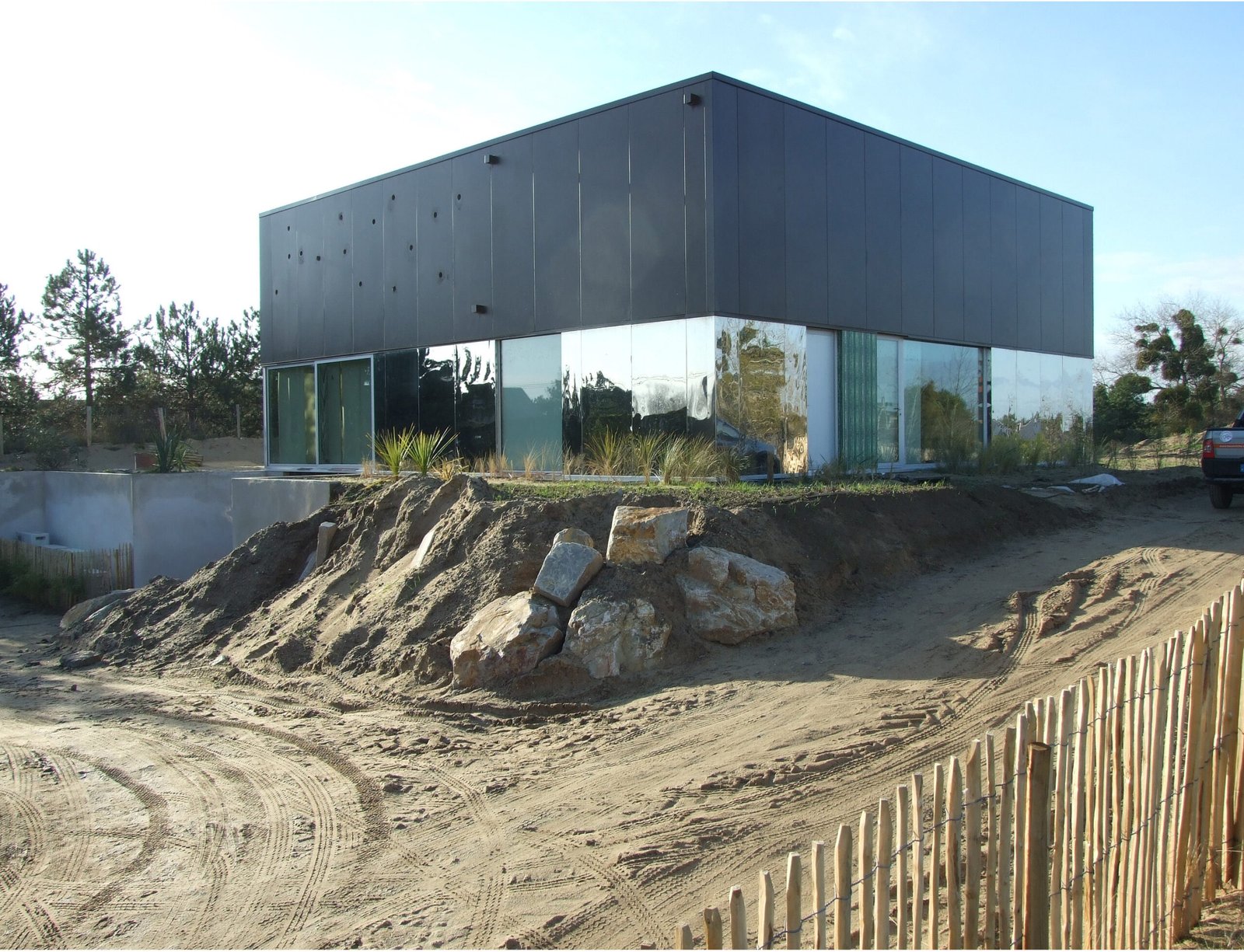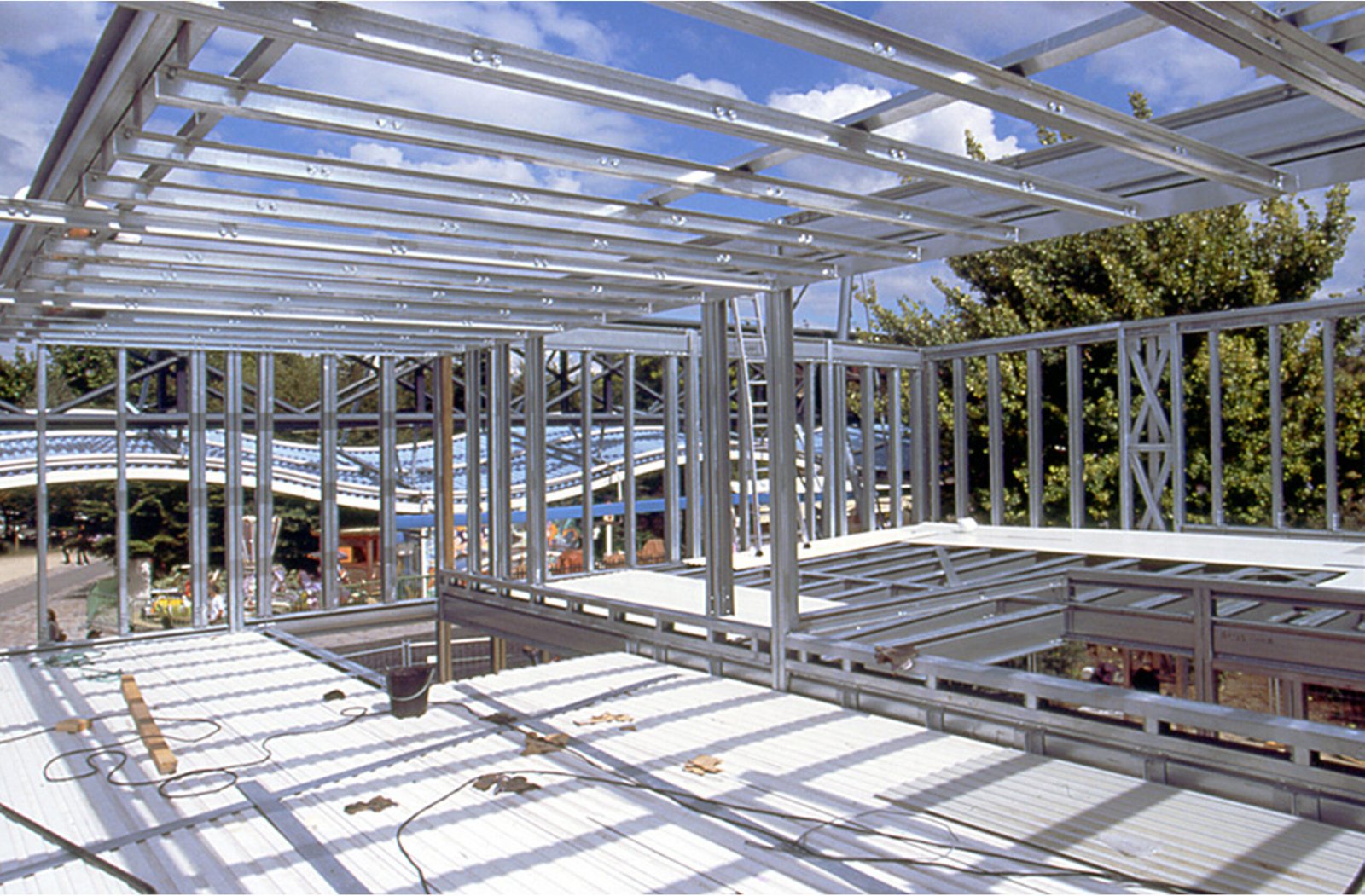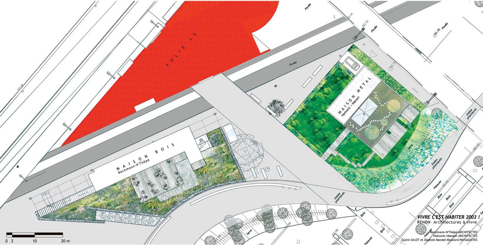 La Maison Métal, événement grand public organisé par À Vivre dans le parc de la Villette en 2004 incarne un travail que l’agence n’a cessé de poursuivre sur l’effacement des limites, la jonction floue et incertaine entre architecture et paysage.