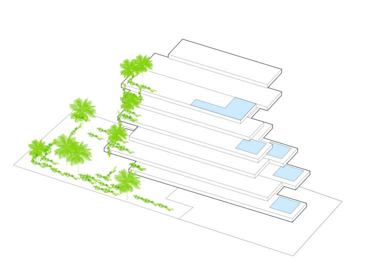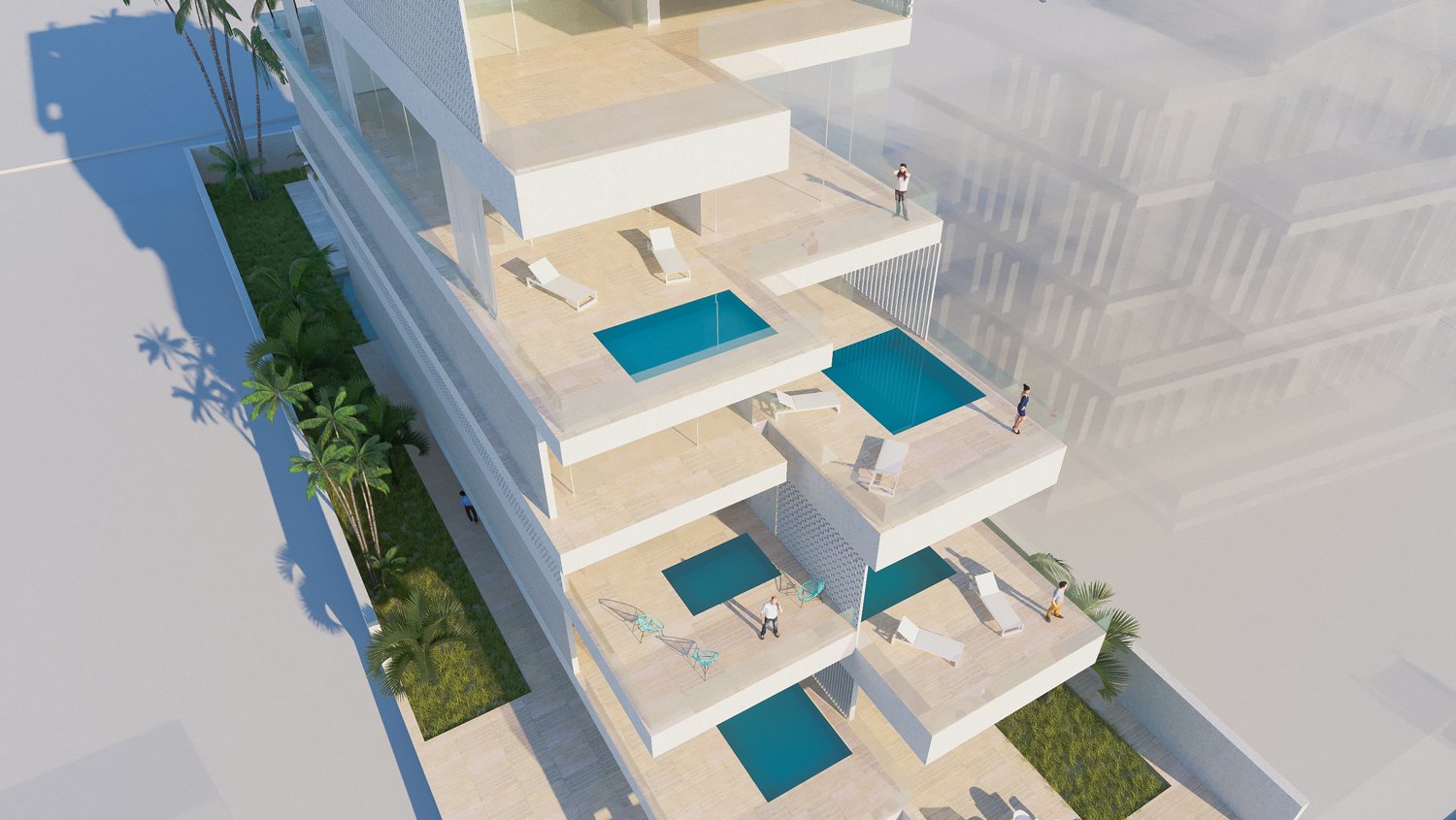 Ces charmes hédonistes ont guidés naturellement notre réflexion. Imaginé comme un ensemble de maisons exceptionnelles superposées, ce projet sera entièrement dédié au bien-être. Le raffinement des matériaux (béton blanc, travertin, verre) et la pureté des lignes, ainsi que la mise en scène du paysage confère à chaque logement un caractère unique.