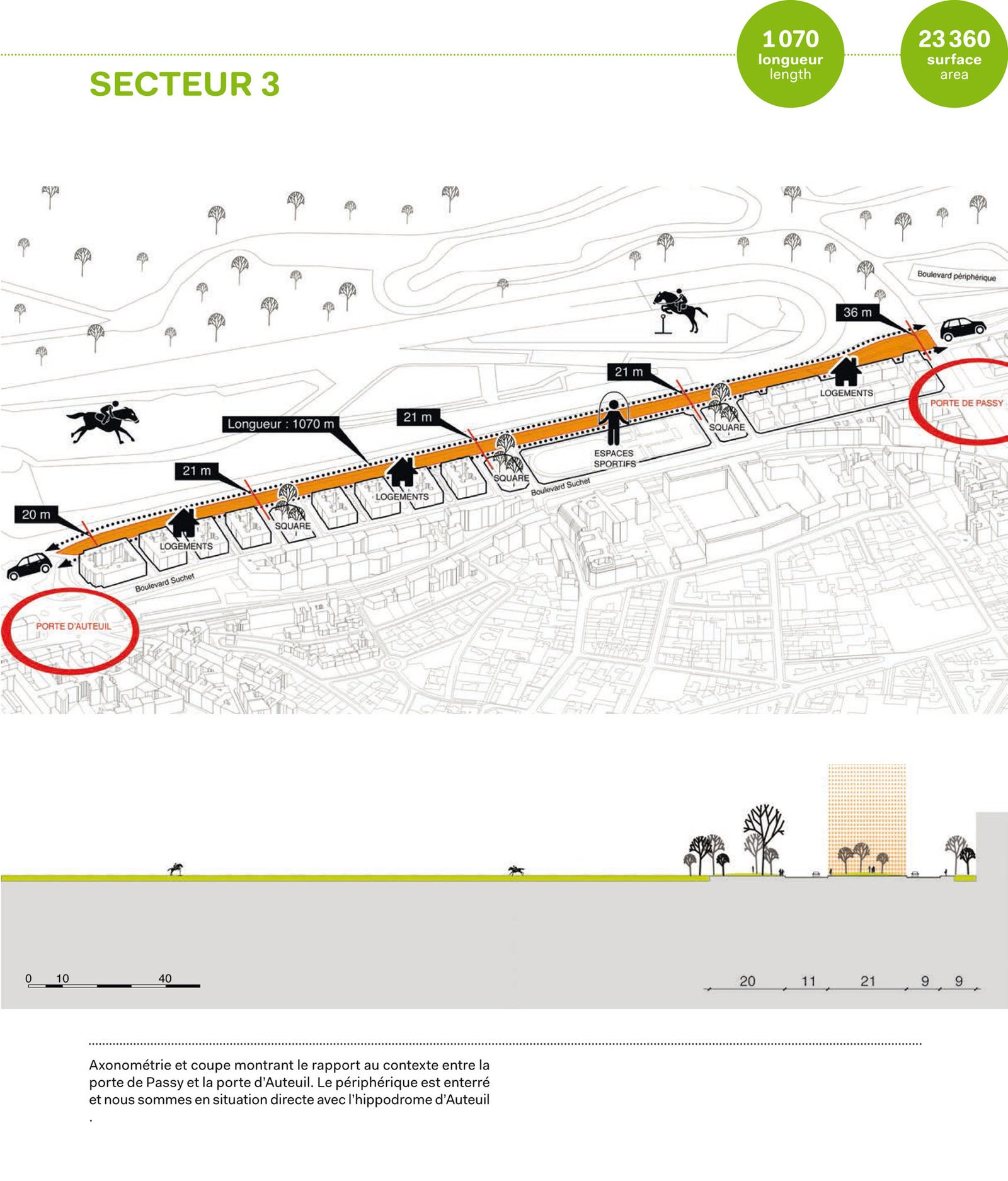 Un potentiel étonnant nous est ainsi légué, où nous pouvons imaginer installer une nouvelle typologie d’habitat parisien portant les valeurs de nos réflexions en matière d’écologie urbaine, de mixité sociale, et ancrée dans un paysage fabuleux. Notre projet s’inscrit dans ce questionnement contemporain et pourrait devenir l’emblème d’une volonté nationale de répondre à des questions d’actualité brûlantes, que se posent l’ensemble des capitales mondiales. Il apporte des réponses précises en matière d’espaces verts en milieu urbain, de mixité programmatique, d’usages, d’espaces publics, de lieux partagés, de transports doux, de logements. Il s’inscrit dans une réflexion politique qui vise à réactiver l’un des plus incroyables lieux parisiens dans un travail d’interconnexion entre l’échelle locale et l’échelle métropolitaine.