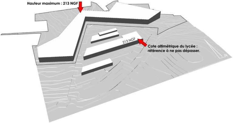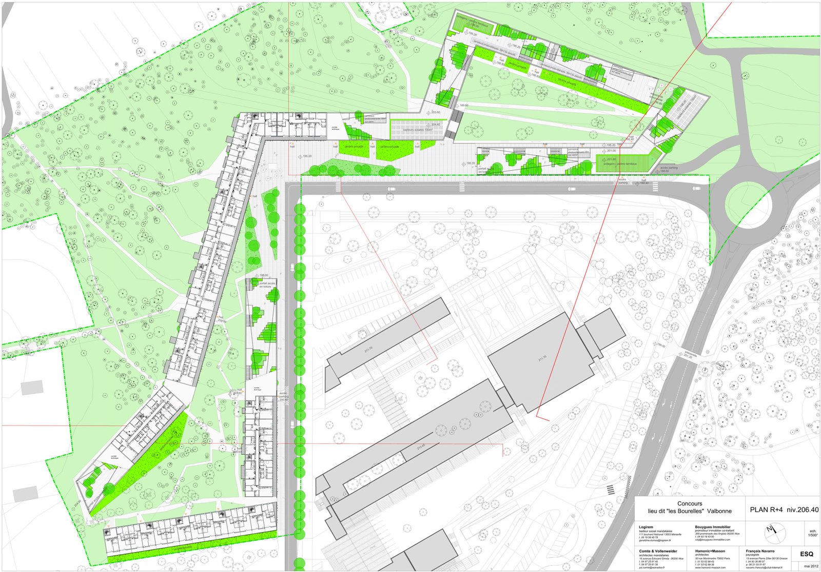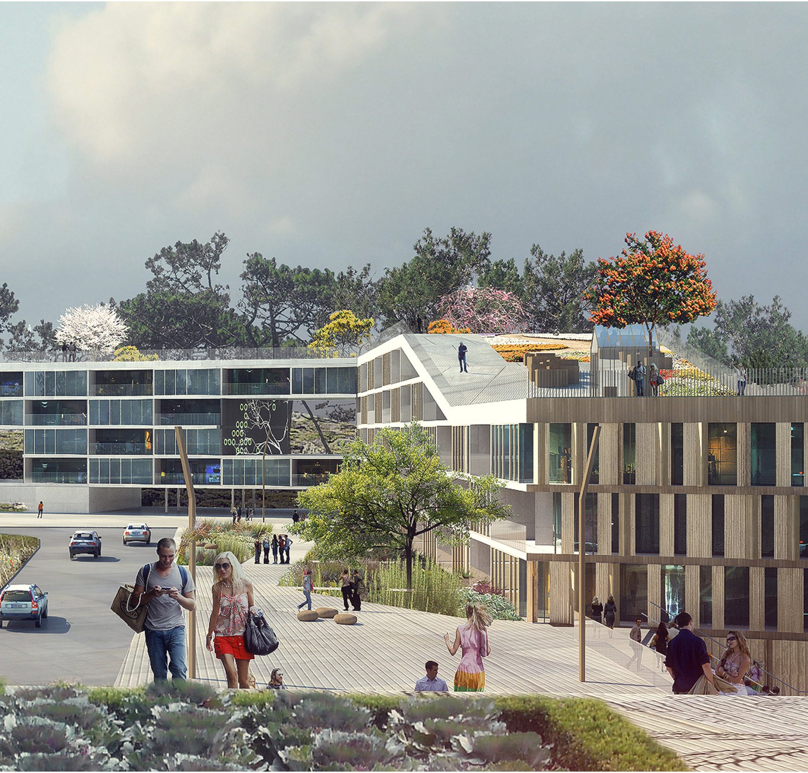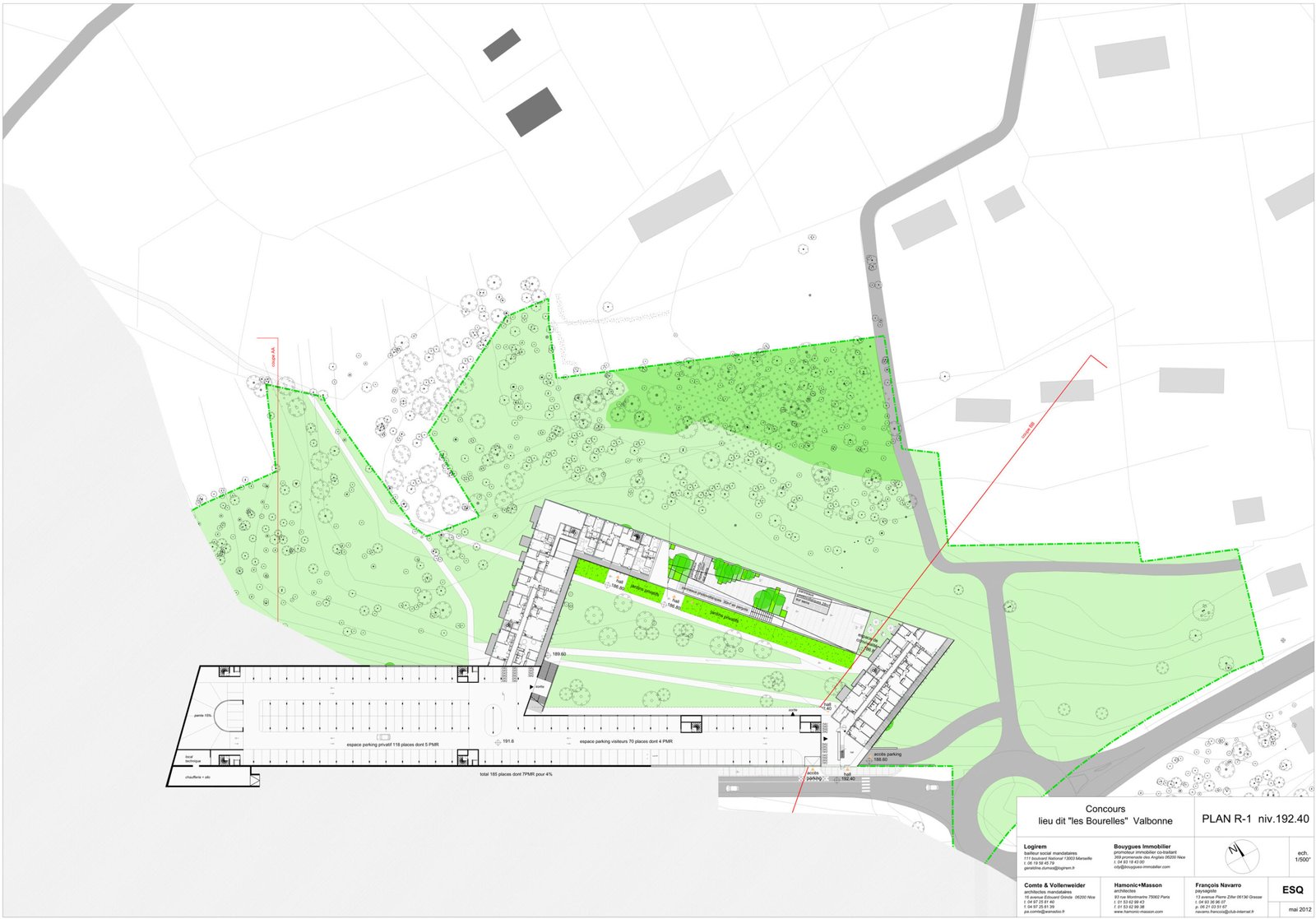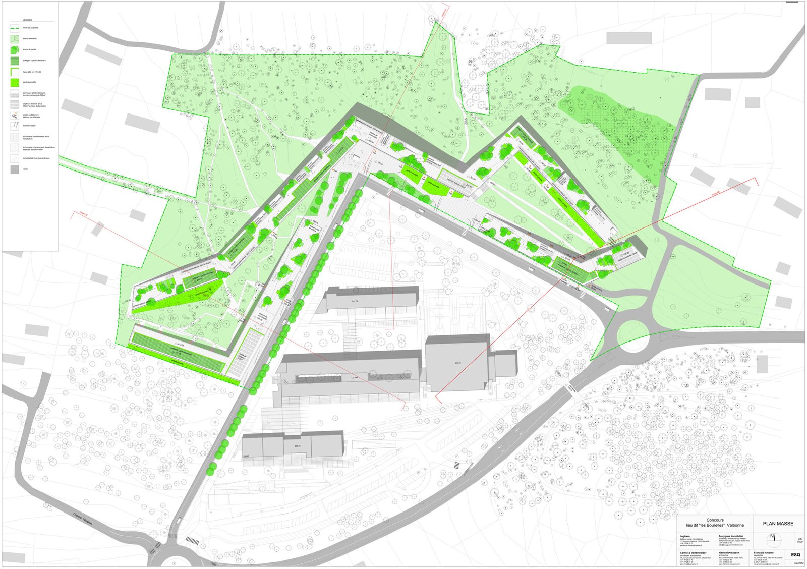 Lire la suite : Vert ToitPlacé à la convergence des déplacements doux et à l’entrée des habitations, le parvis a vocation à donner l’identité du lieu, à créer une centralité capable à terme d’accueillir des activités propres au développement de la vie de quartier et d’envisager que les élèves du lycée ou plus simplement les habitants du quartier puissent profiter d’un lieu urbain plein sud à l’écart de l’infrastructure routière de la route de Biot.