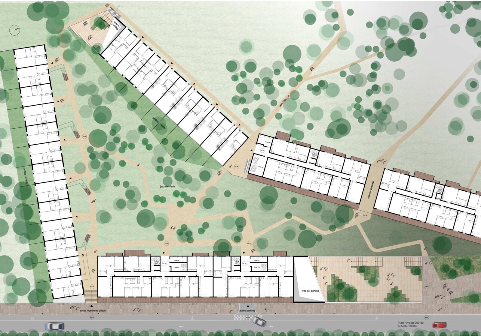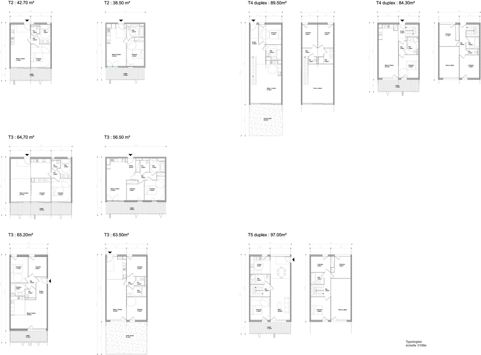 Cette conception se décline de la villa en bande (entrée indépendante, typologie sur deux niveaux et jardin en pleine terre) jusqu’au collectif “classique” avec distribution intérieure en passant par “l’immeuble villa” offrant une forte relation à l’extérieur et des distributions par coursives.