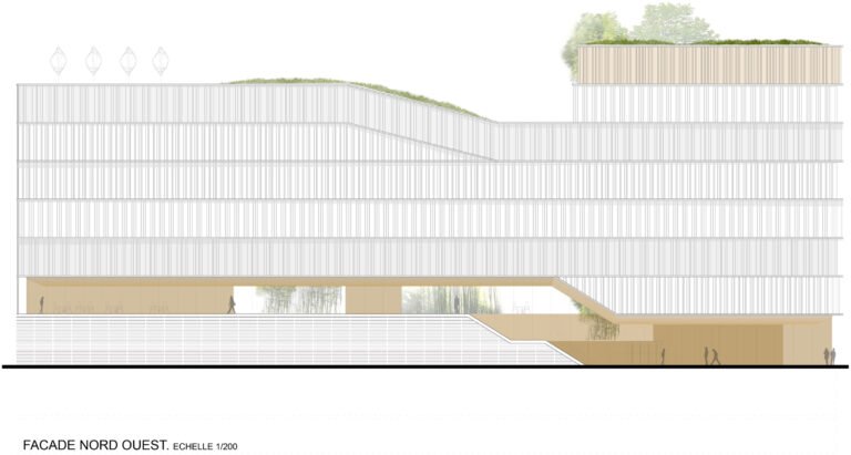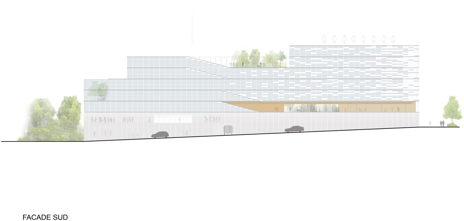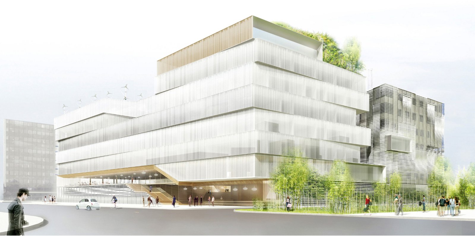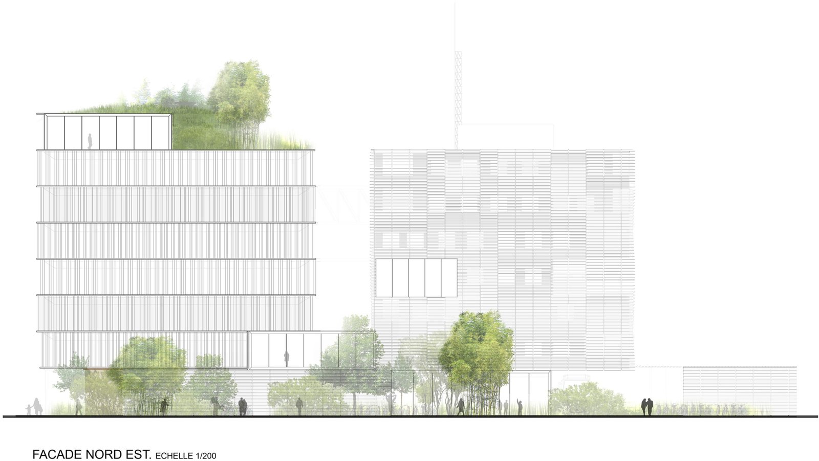 Nous voulions un accompagnateur urbain, un vide sculpté par ses fonctions, qu’il incarne l’hybridation au cœur de la ville. La collectivité est exprimée comme addition d’éléments tandis que les bureaux sont dans le registre de la sensualité, de la fluidité, de l’évanescence propre à l’informel.
