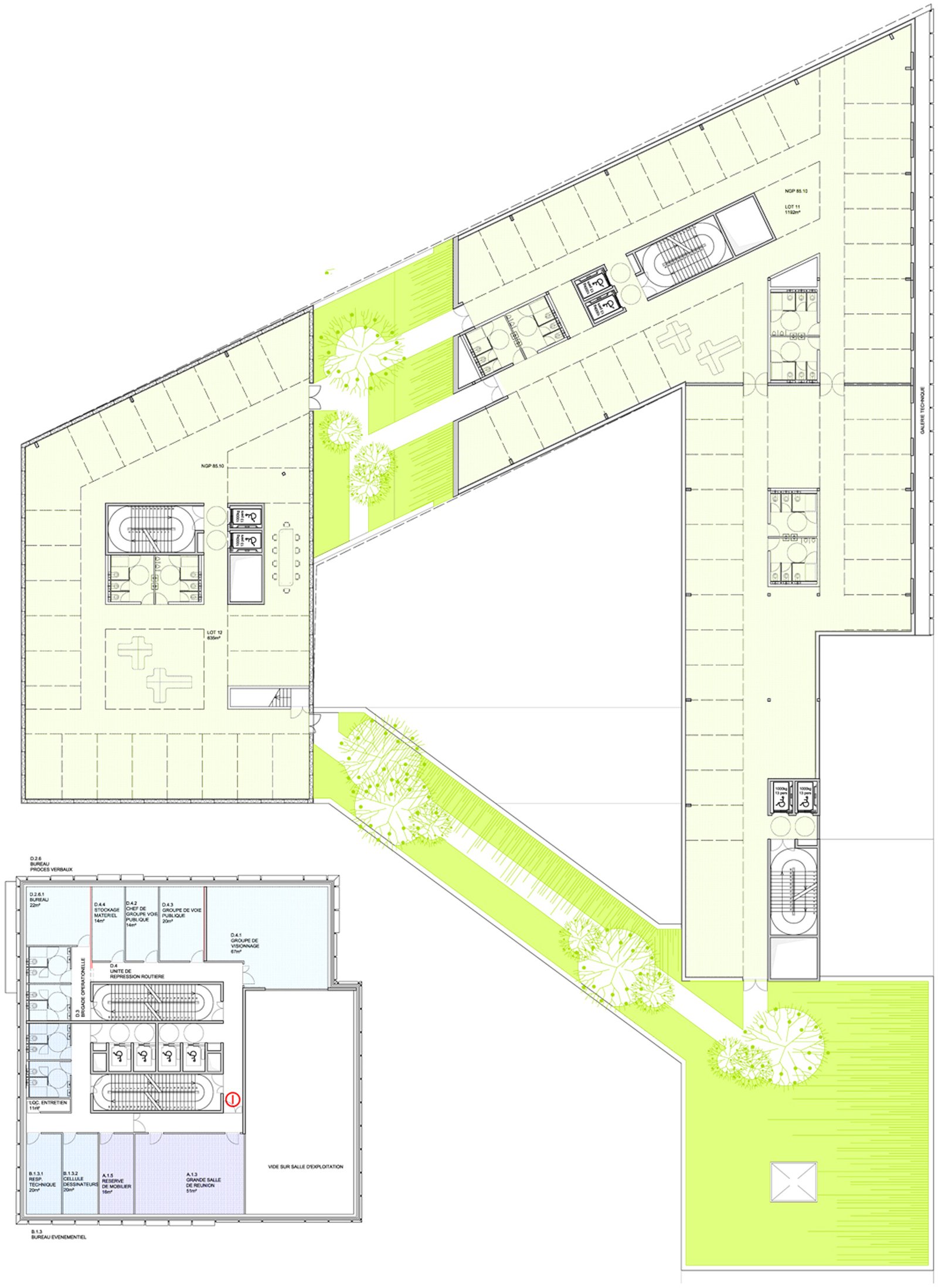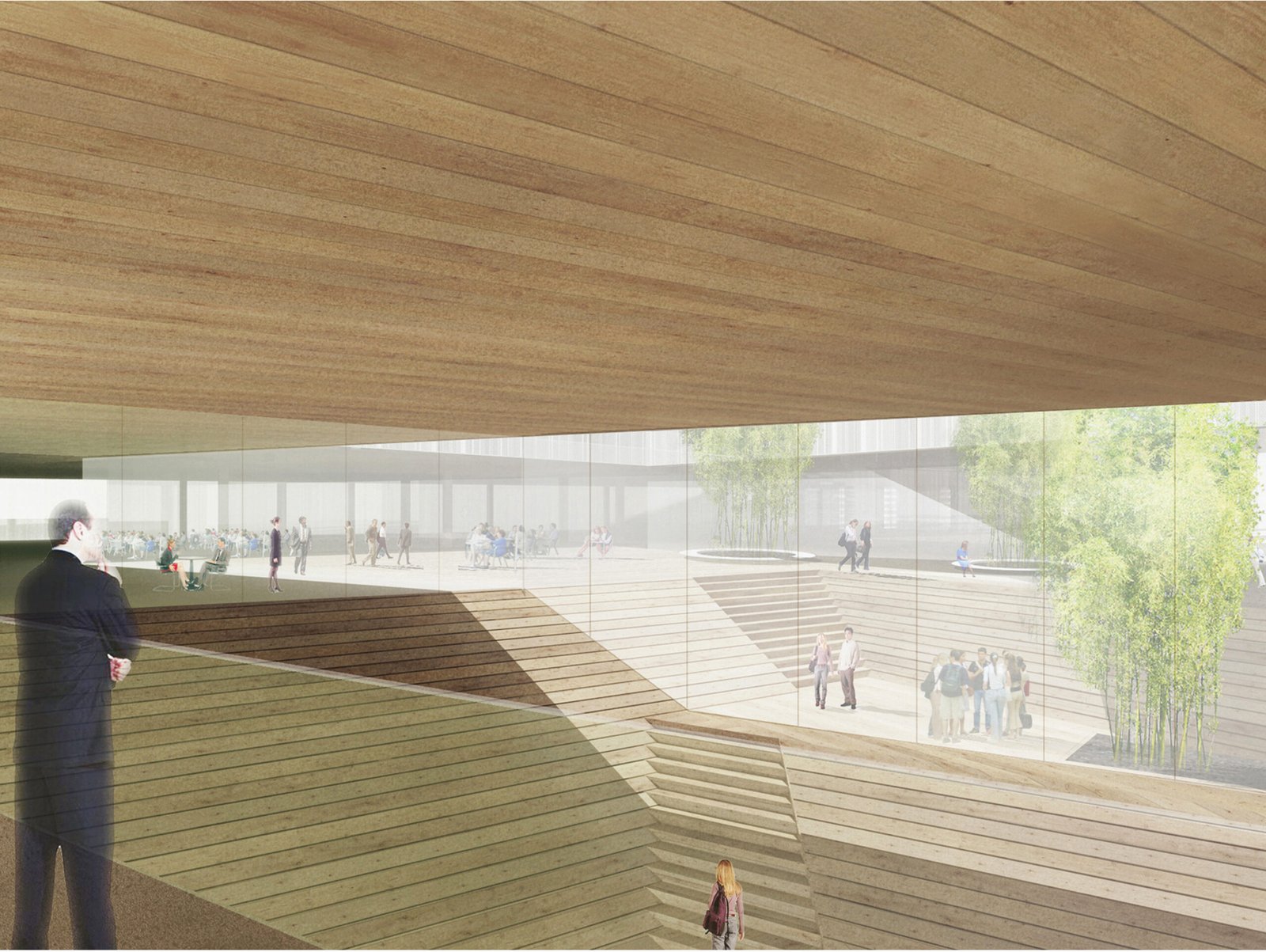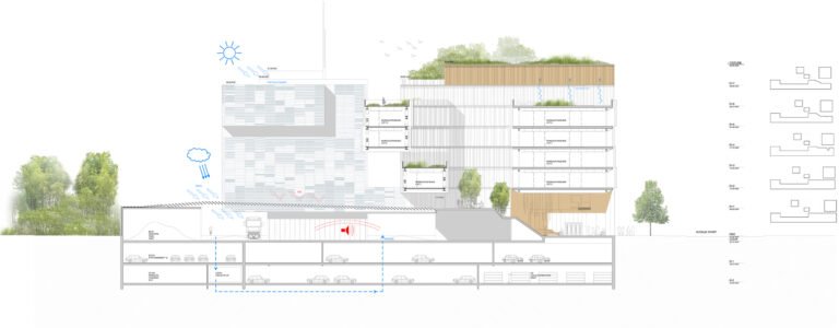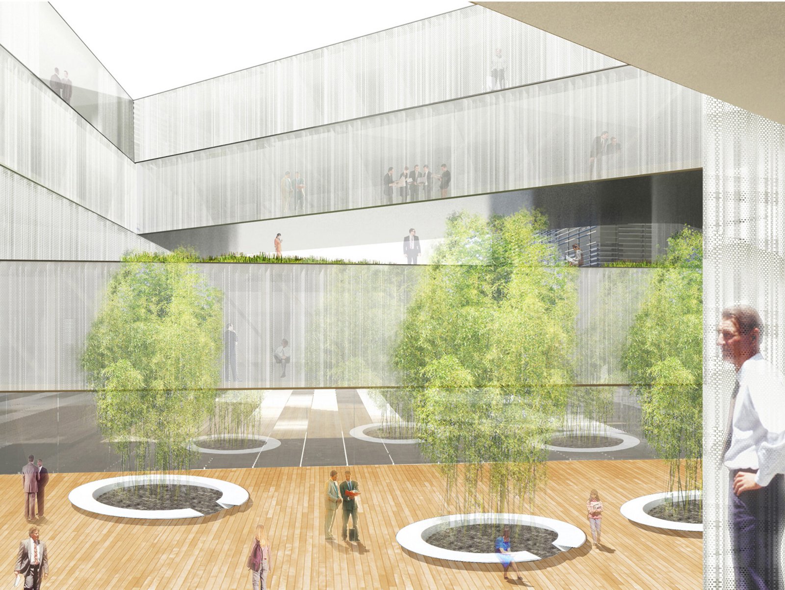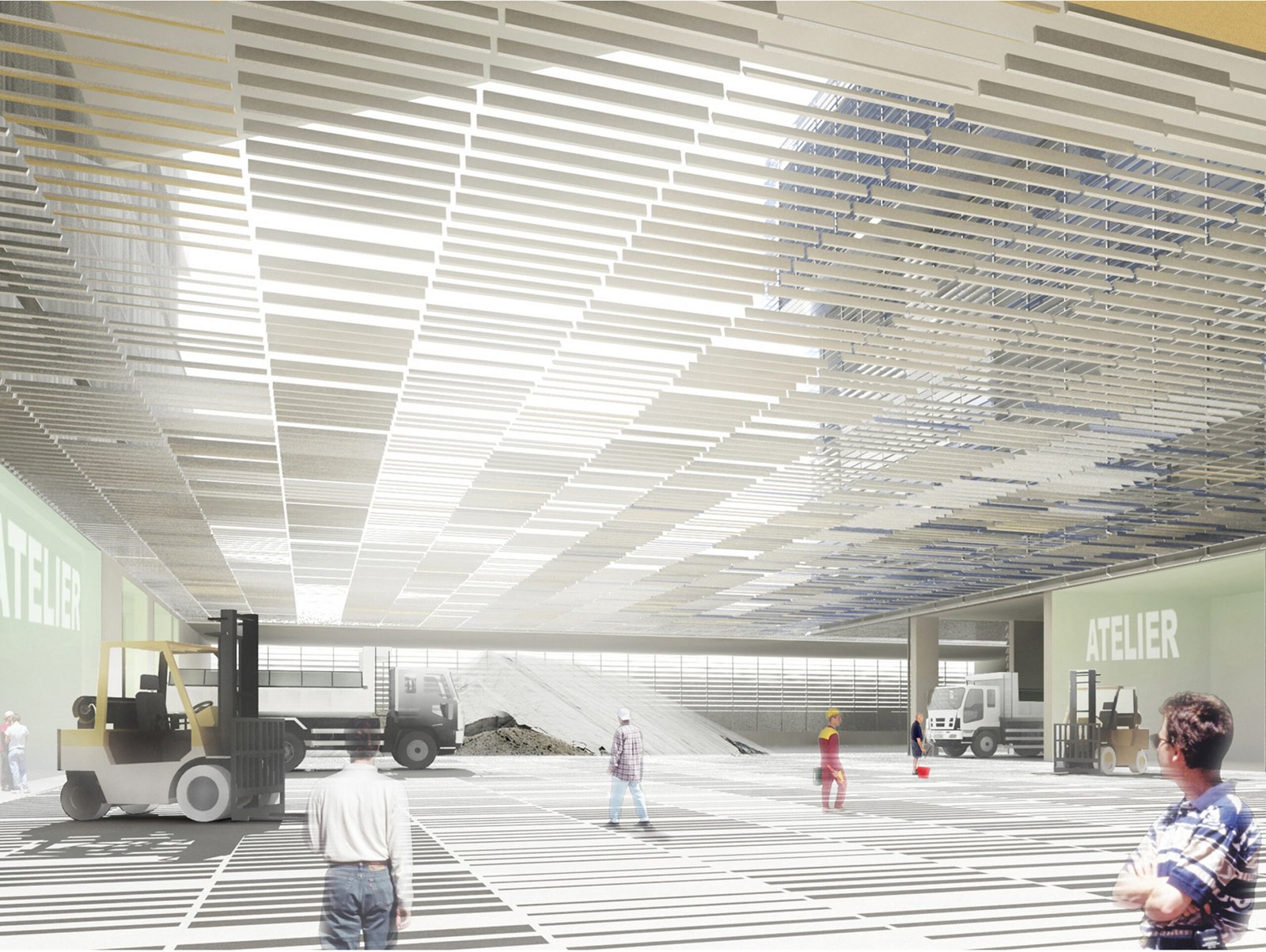 Nous voulions un accompagnateur urbain, un vide sculpté par ses fonctions, qu’il incarne l’hybridation au cœur de la ville. La collectivité est exprimée comme addition d’éléments tandis que les bureaux sont dans le registre de la sensualité, de la fluidité, de l’évanescence propre à l’informel.