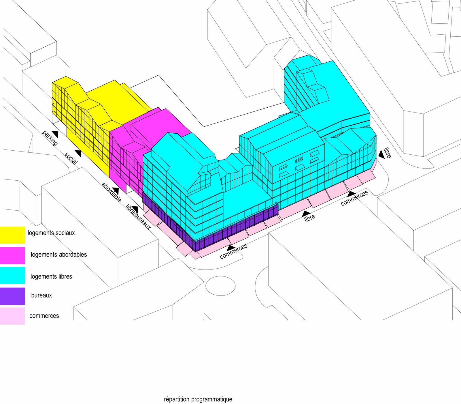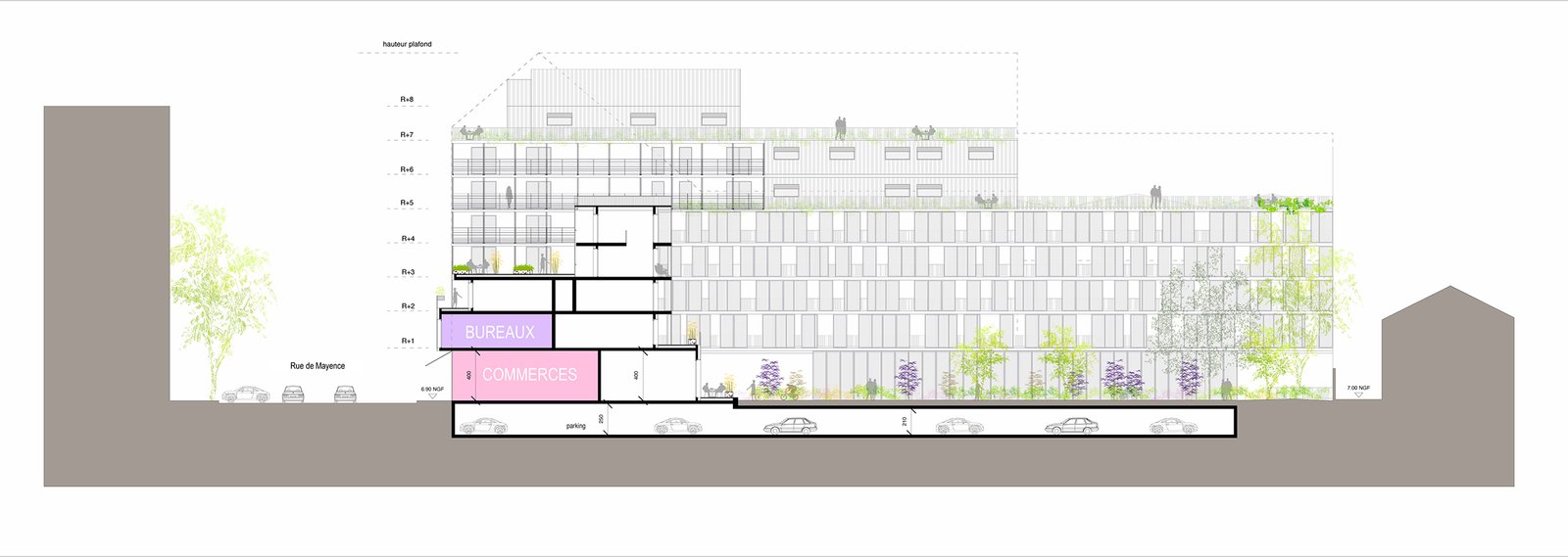 Construction neuve de logements en accession et sociaux + commerces + bureaux