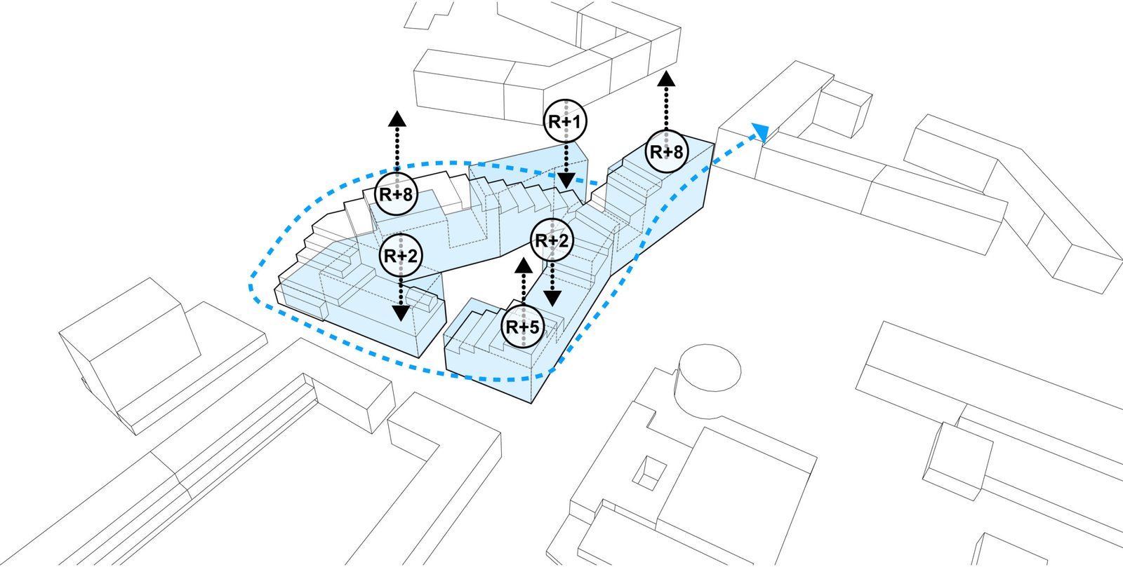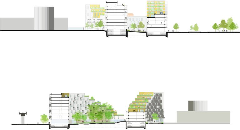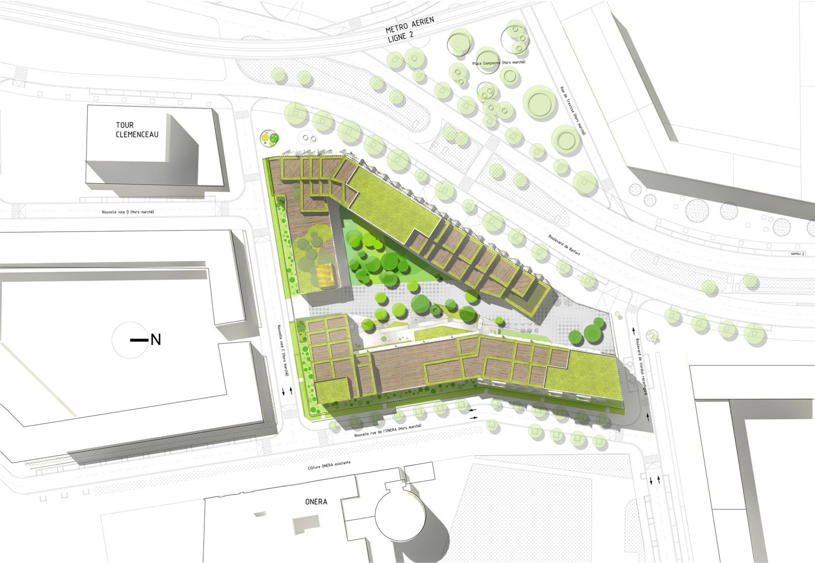Il s’agit notamment de tirer parti de la position stratégique de « rotule » du site dans la ZAC pour établir une connexion avec les quartiers environnants. Par ailleurs, la demande de qualité d’usage des logements, du traitement des relations qu’ils entretiendront entre eux et avec les autres éléments du programme ainsi que le rapport des immeubles projetés avec l’espace public appellent une volumétrie ambitieuse.
