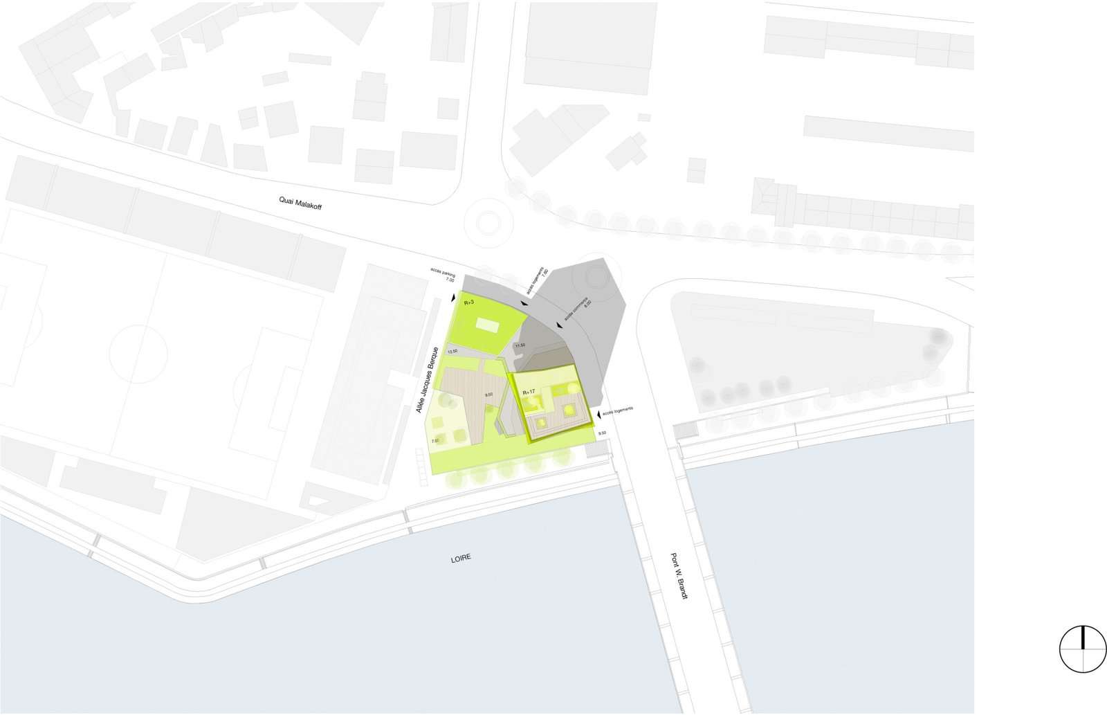 Lire la suite : ZAC EuroNantesIl nous faut respecter la poésie de ce lieu et participer à sa mutation. C’est pourquoi nous proposons un morceau de paysage. Pas de couleurs, de bavardage pictural, mais de l’épaisseur, de la légèreté. Travailler ici sur la matière première de l’architecture, le sol, la lumière, la vue, le ciel.