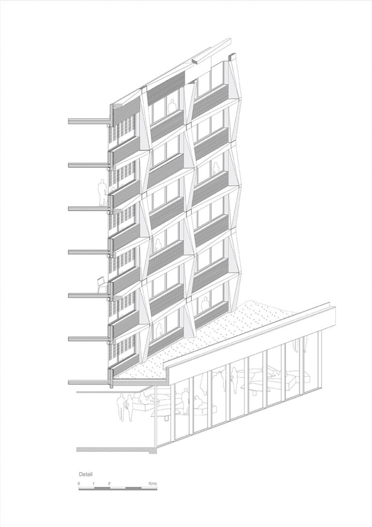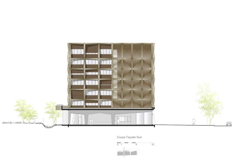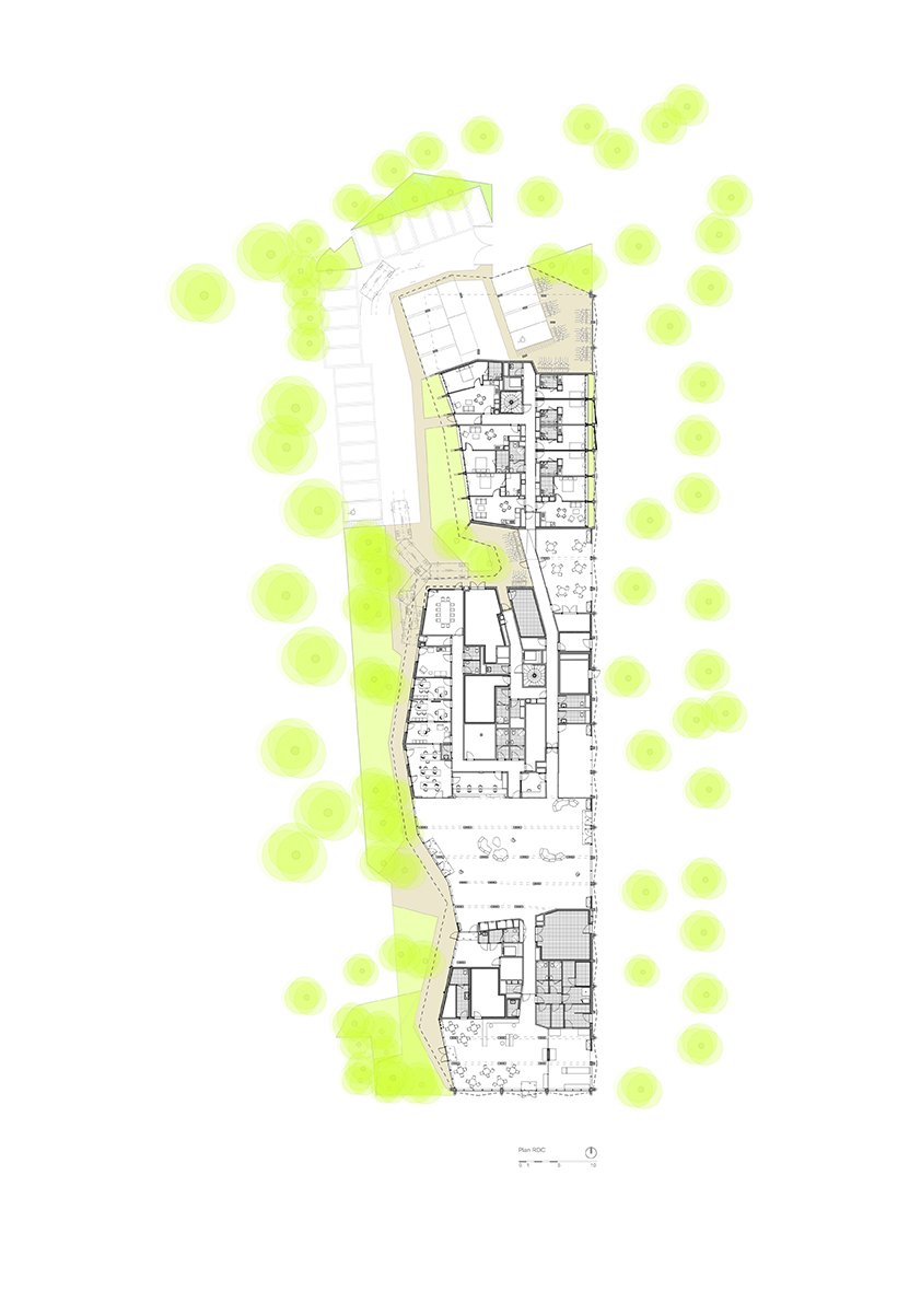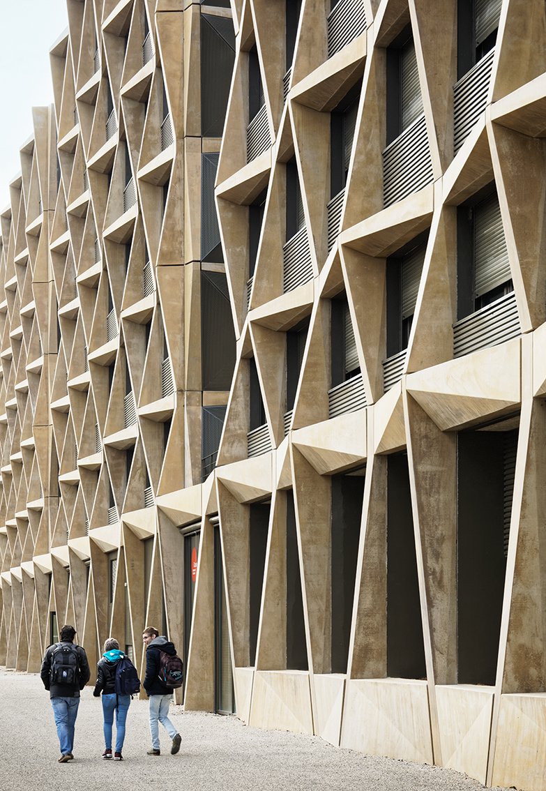 L’idéal ne se situe pas dans la chambre, il se situe dehors. Une résidence pour étudiants doit être un lieu ouvert à l’interprétation et à l’appropriation de chacun. Mieux faire circuler les personnes, c’est d’abord mieux faire circuler les idées et les connaissances et mettre les rapports humains au cœur du dispositif. C’est cet équilibre entre la fonctionnalité, la recherche d’une performance spatiale, l’appréhension d’un territoire global et, en même temps, un décalage suffisant, bien dosé, qui rend ce projet unique.