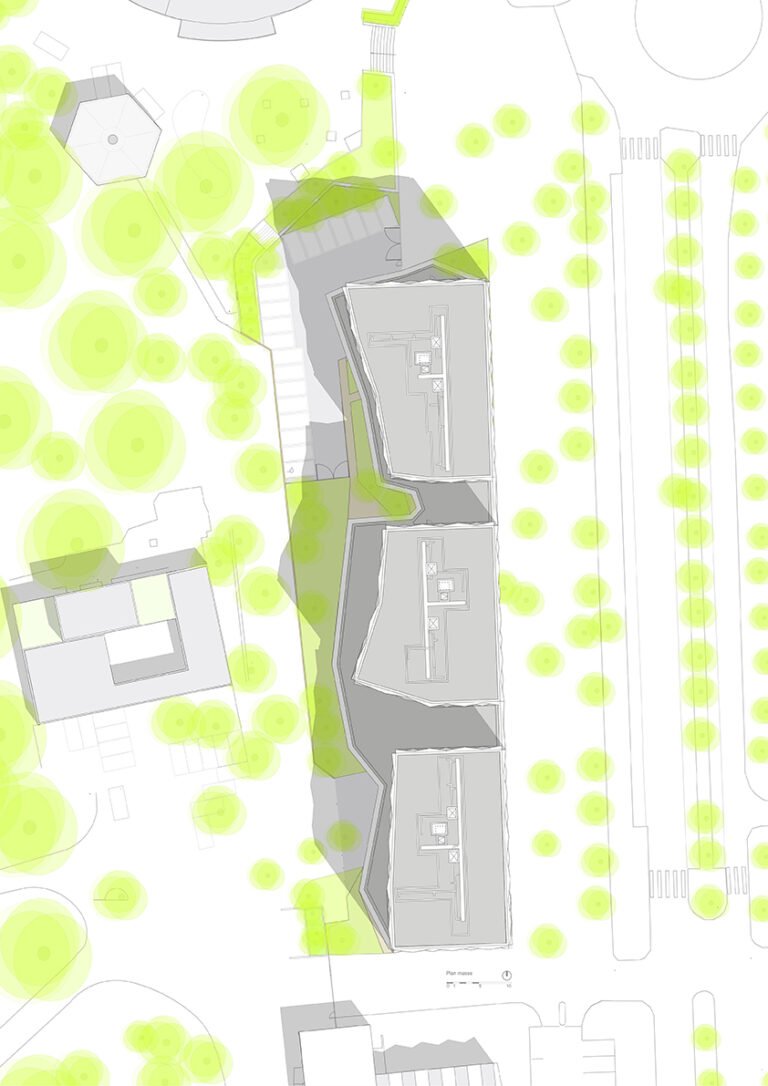 Le site du Campus Universitaire du Triollet joue d’une urbanité d’objets, de bâtiments indépendants les uns des autres. L’ambition de construire une nouvelle résidence universitaire doit se faire dans l’optique d’une convergence partagée, d’un rassemblement aussi bien physique que psychologique pour faire en sorte que les étudiants qui partagent ces locaux fassent partie d’un ensemble commun.