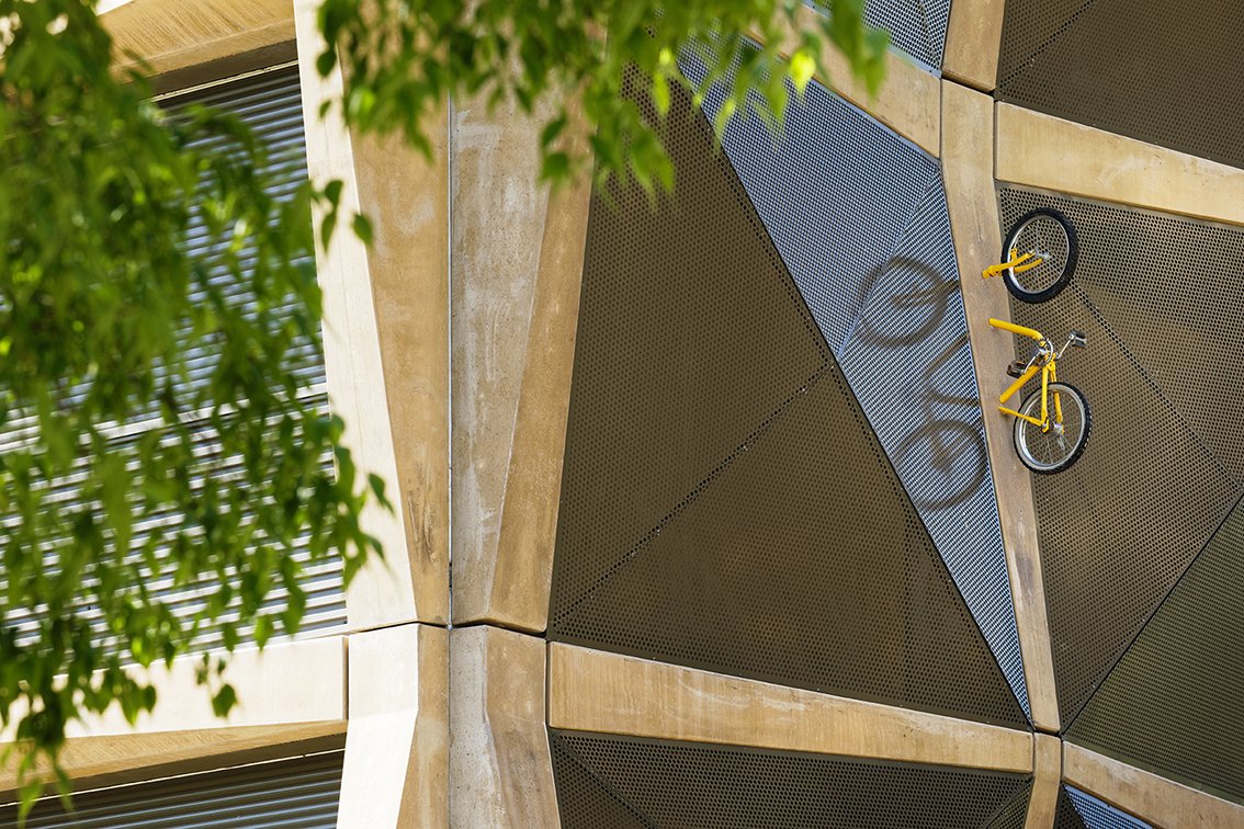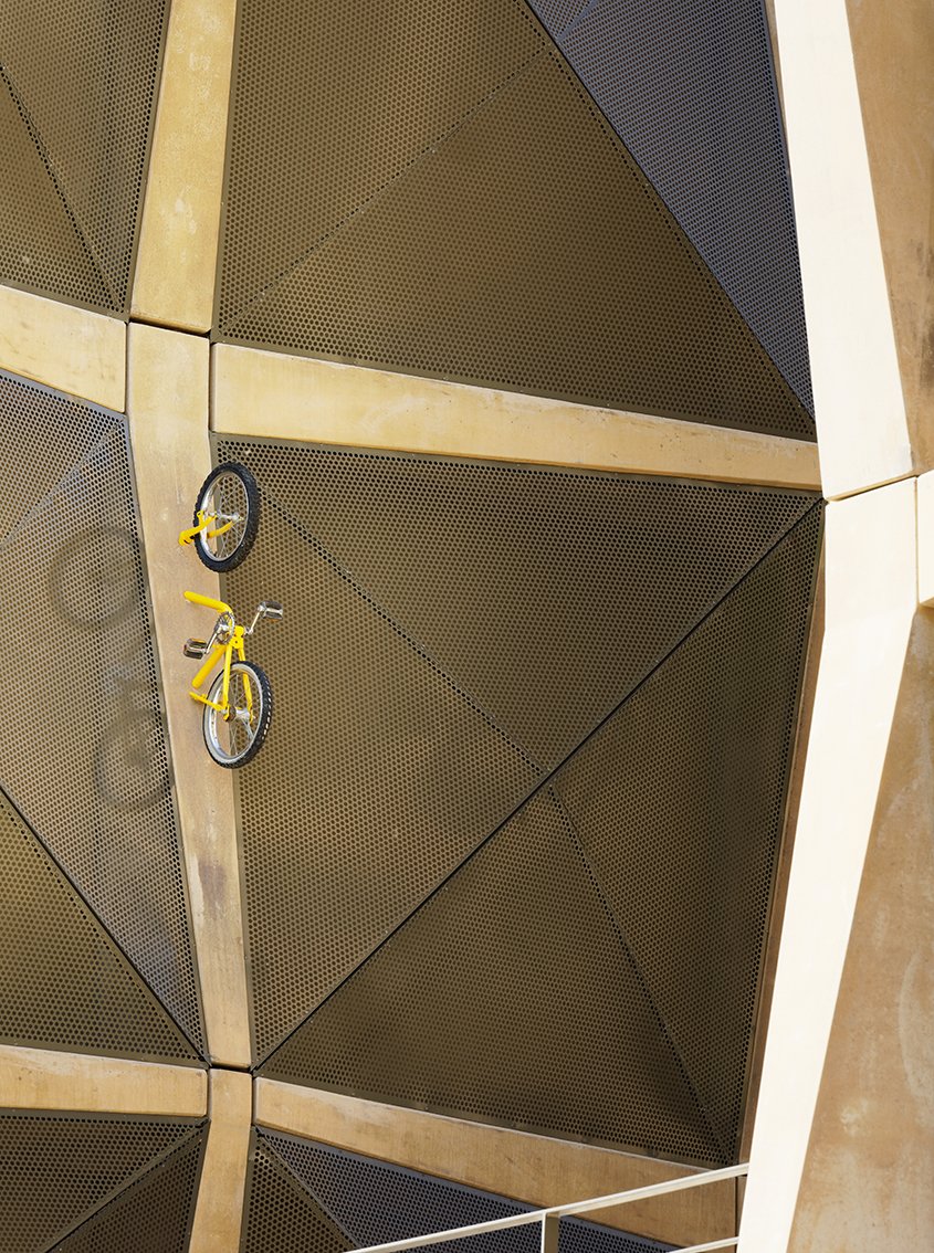 L’artiste Monsieur BMX a quant à lui décliné sur les façades de la résidence son dispositif fétiche, un vélo BMX récupéré est encastré dans les modénatures en béton et semble tantôt percuter, tantôt émerger de la façade en une pirouette.