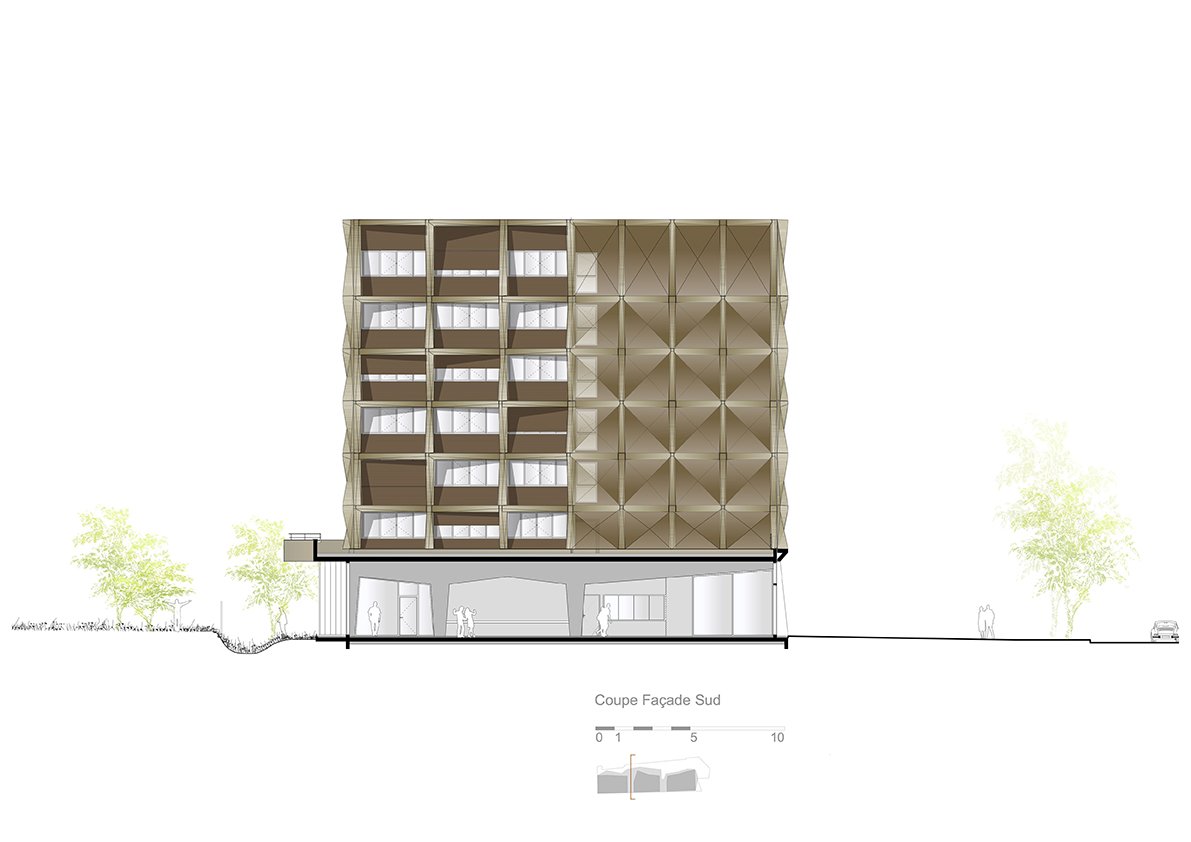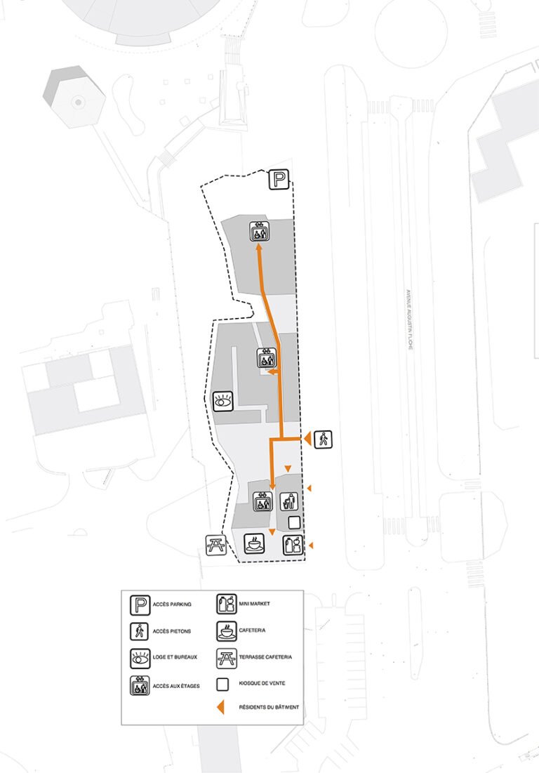 315 logements étudiants + cafétéria + salle de sport + mini-market + bureaux