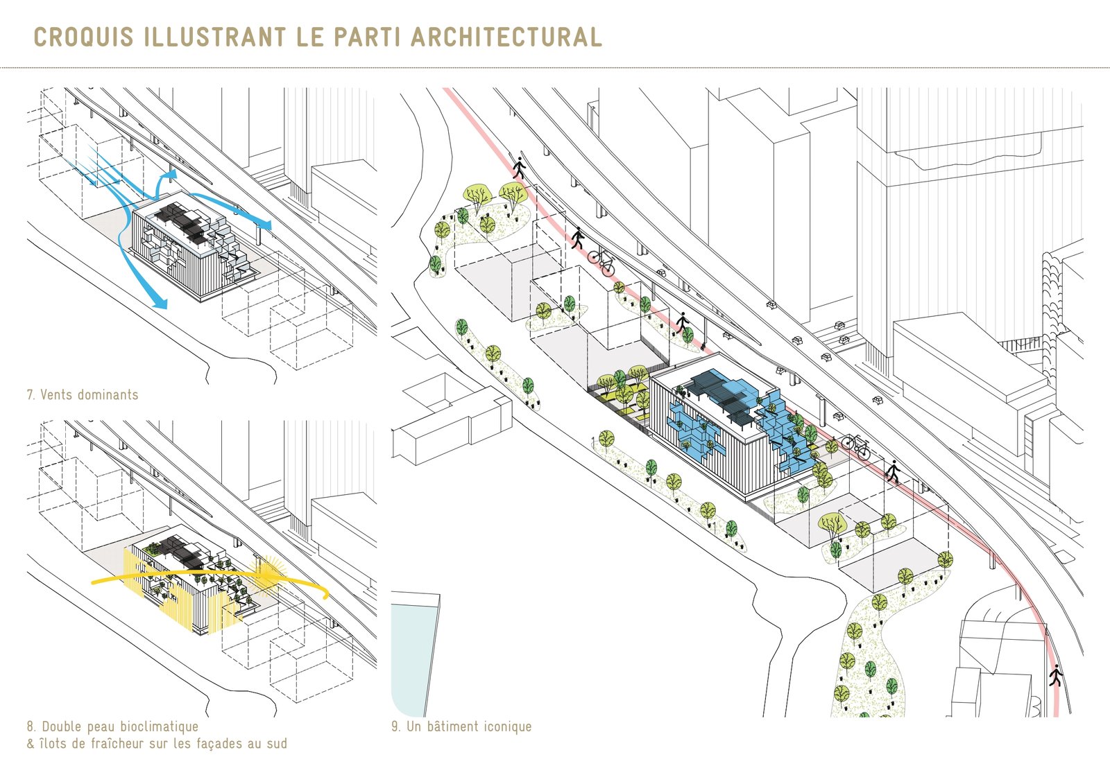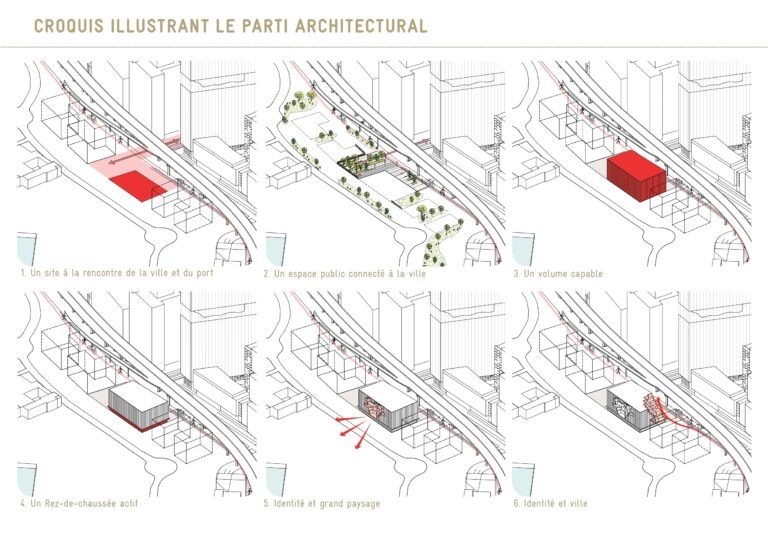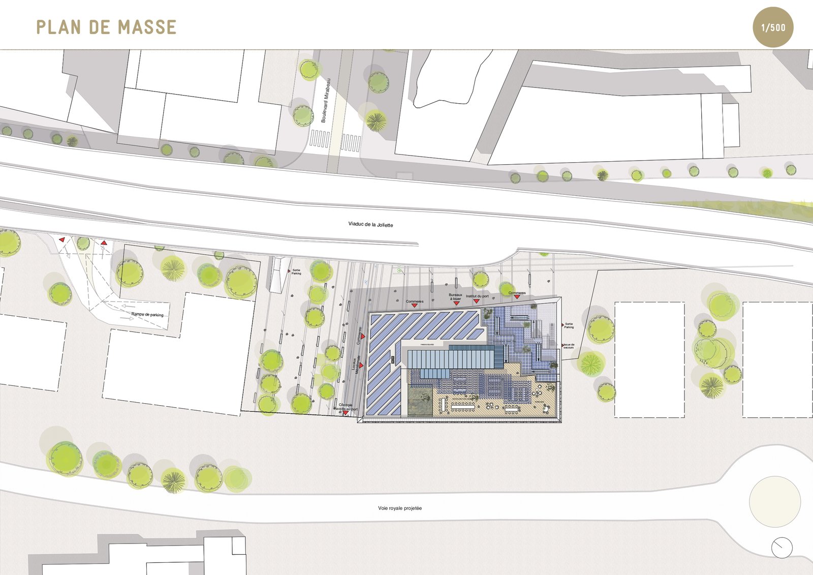 Premier bâtiment de la métamorphose des quais, notre projet prend naissance sur un site exceptionnel. A la rencontre de la ville et du port, il se situe dans la prolongation du boulevard Mirabeau et au centre du projet de transformation urbaine initié par le Plan Guide de la Joliette.