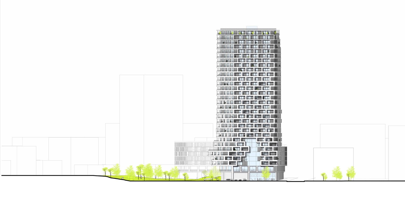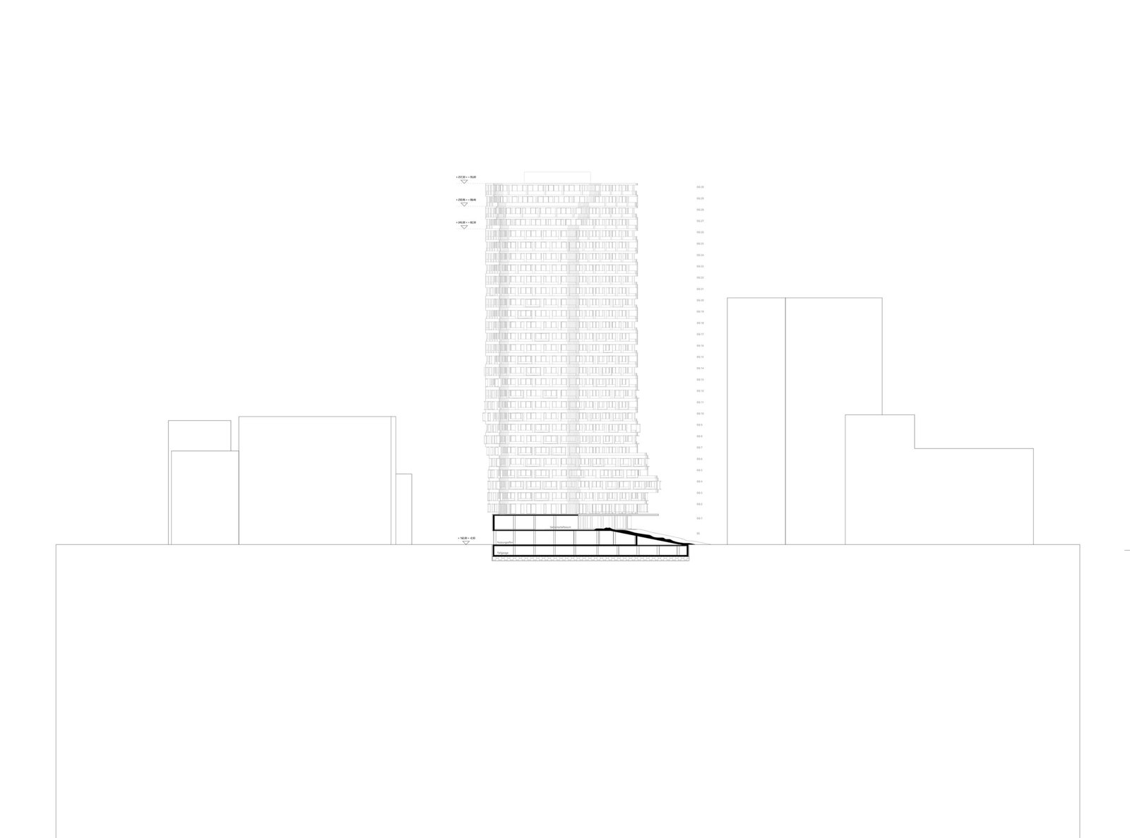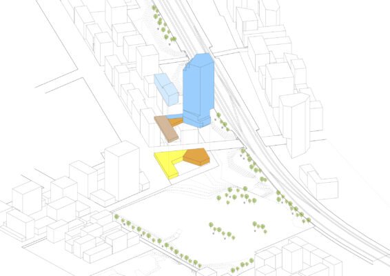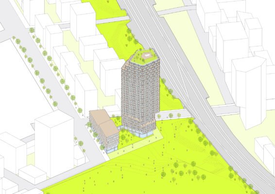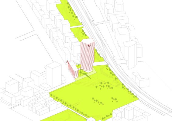 Tour de 95 mètres comprenant 305 logements + commerces + lieux collectifs + parkings