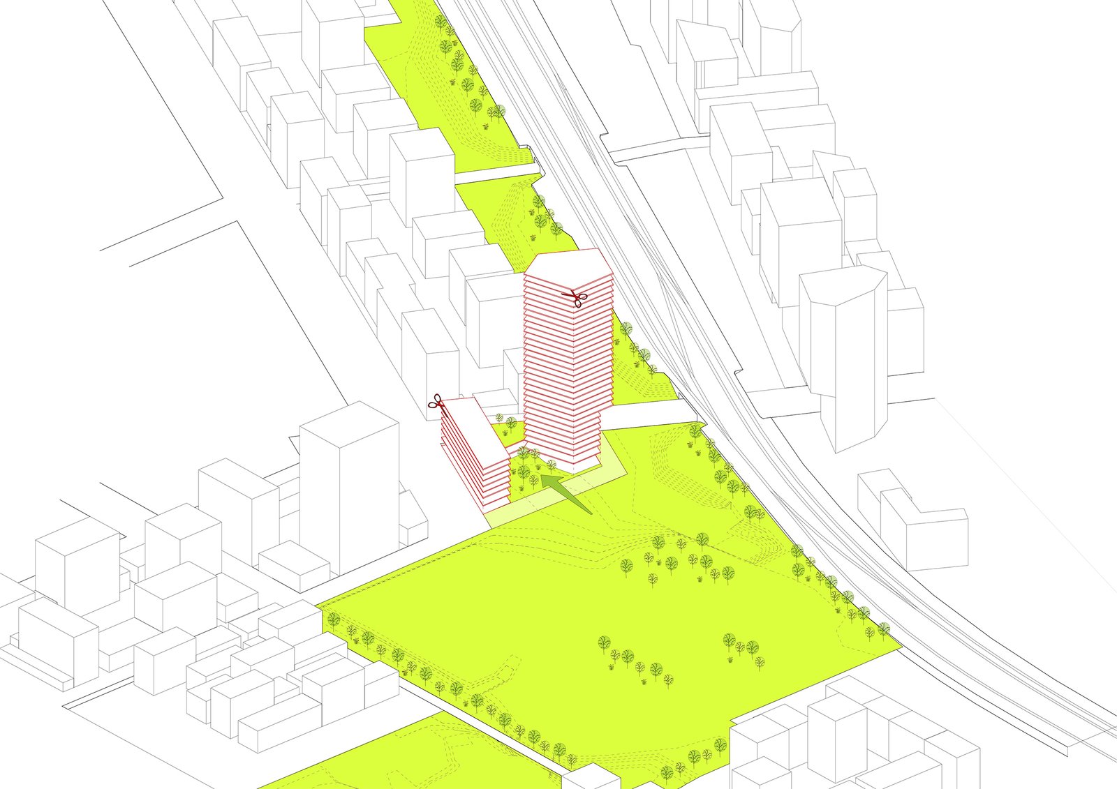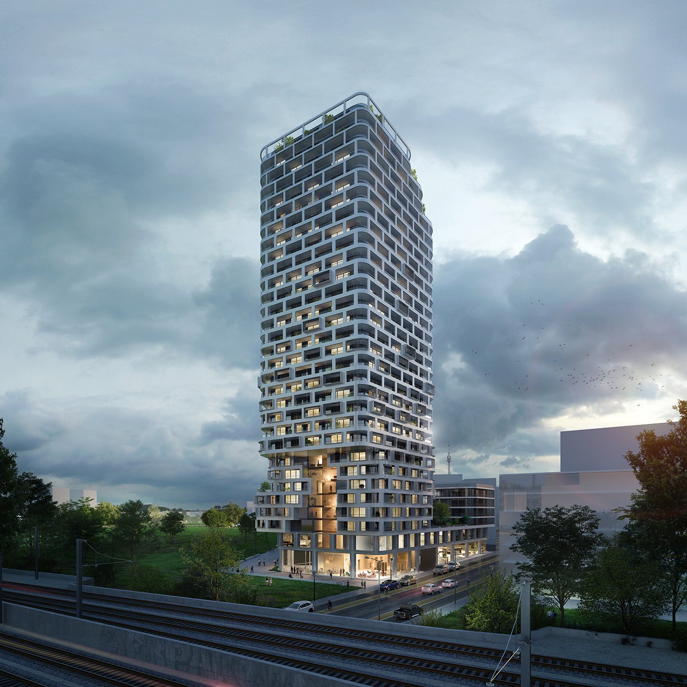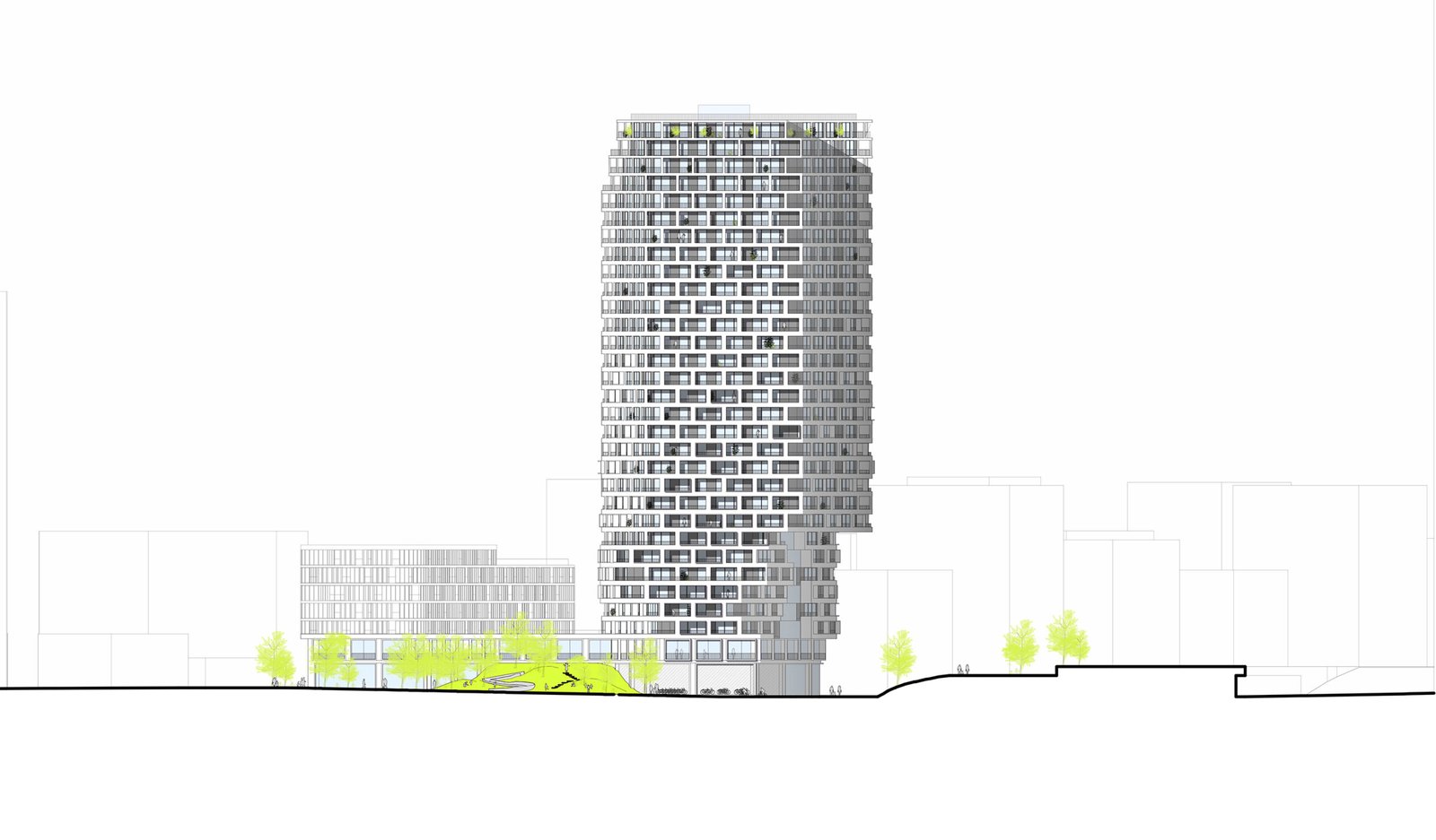 Tour de 95 mètres comprenant 305 logements + commerces + lieux collectifs + parkings