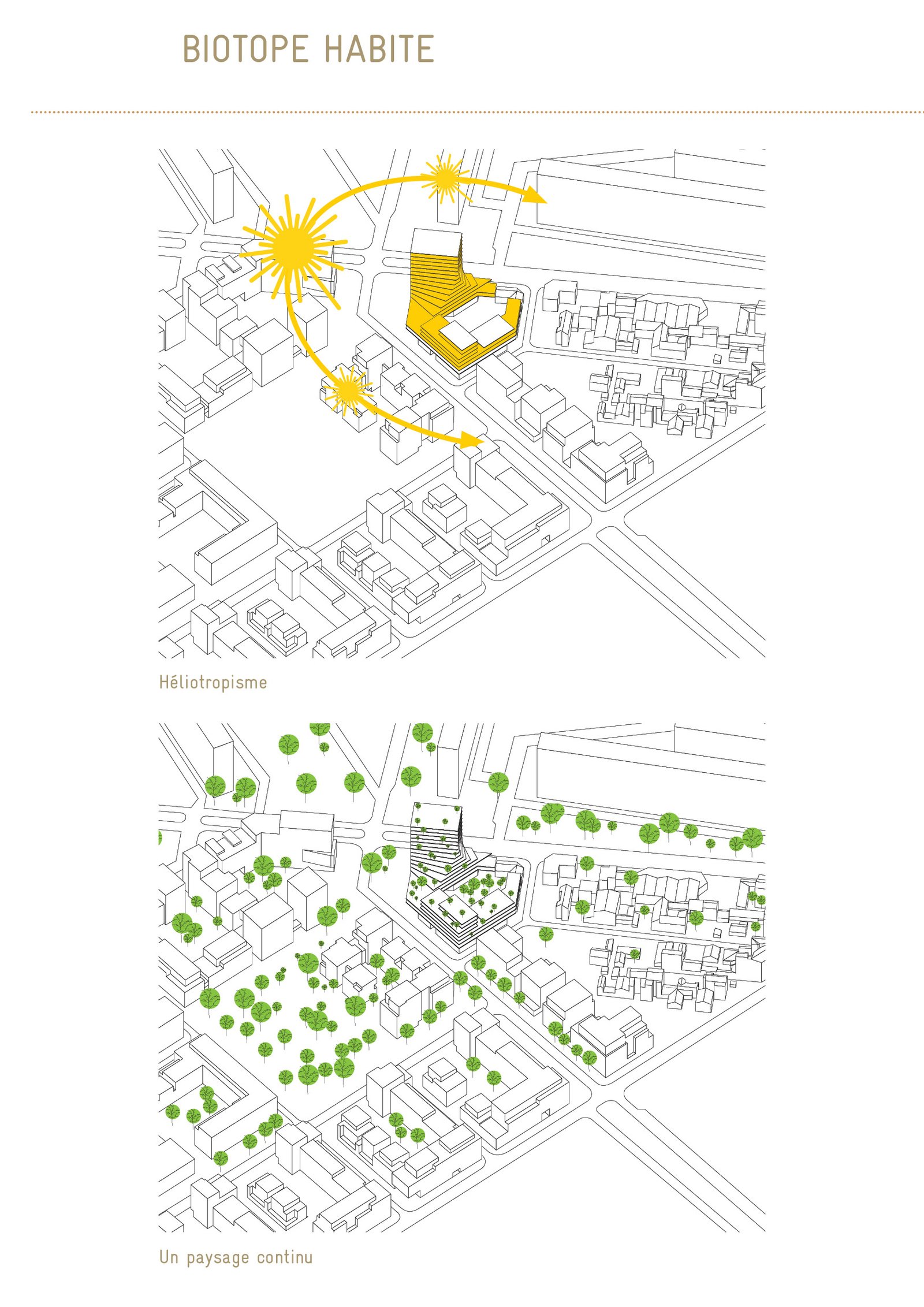 Lieu de la transparence, de la profondeur, de perspectives diverses, les porosités enrichissent la ville en offrant un caractère dynamique et vivant sur l’ensemble du périmètre de notre projet en laissant percevoir un cœur d’îlot verdoyant dans la continuité du parc…