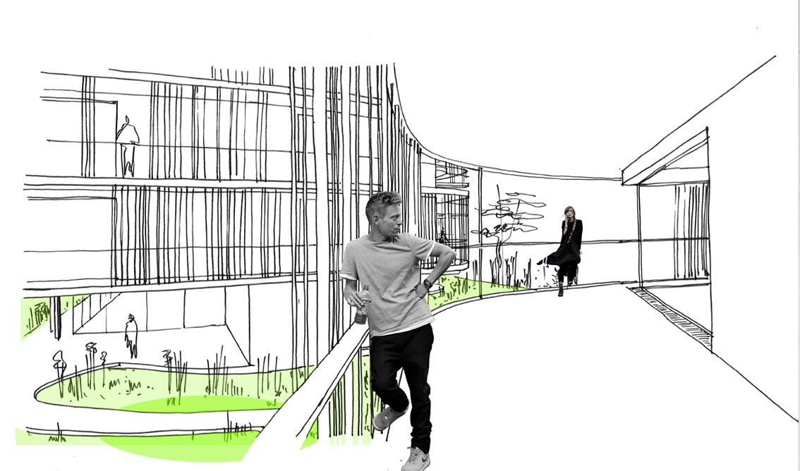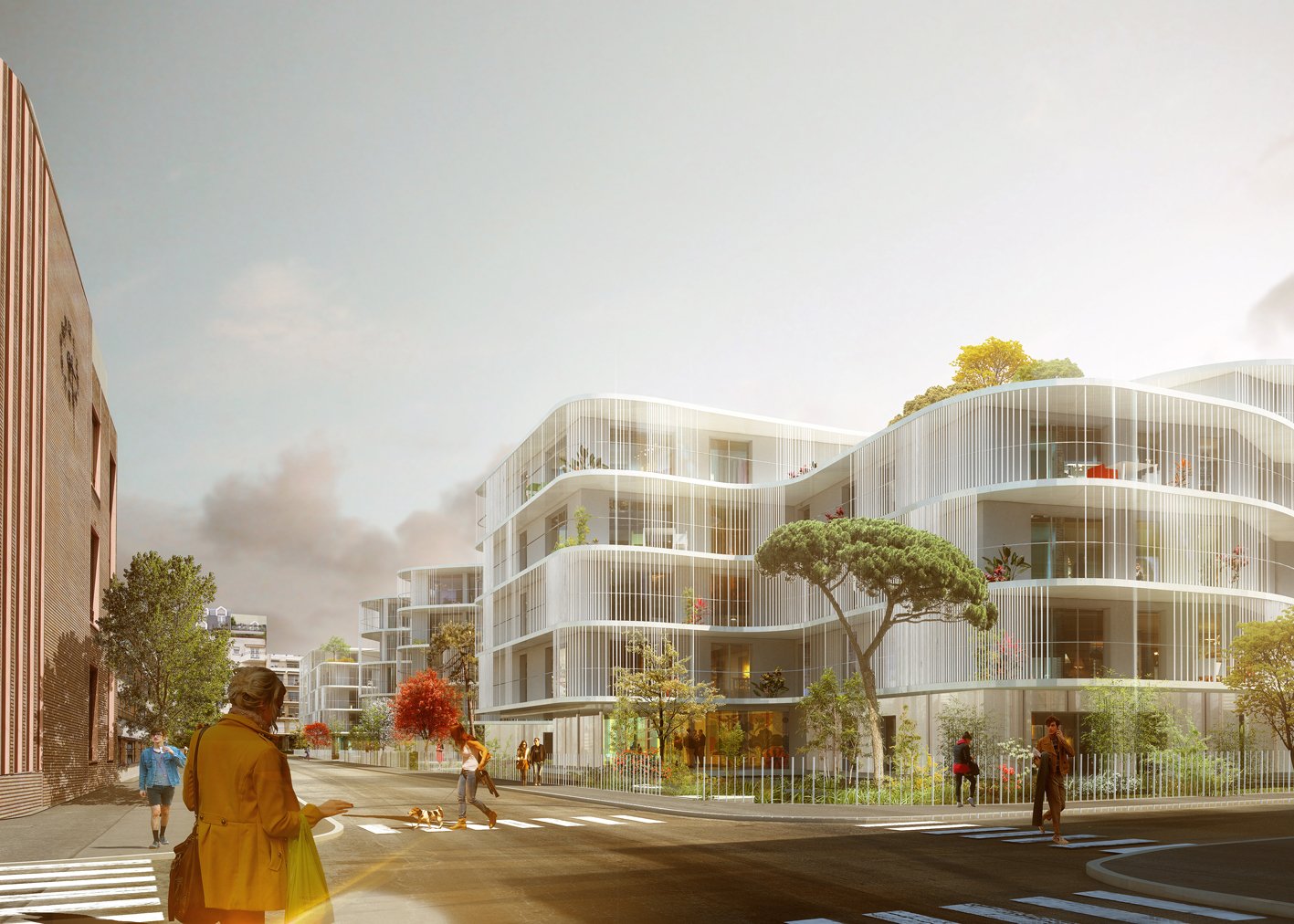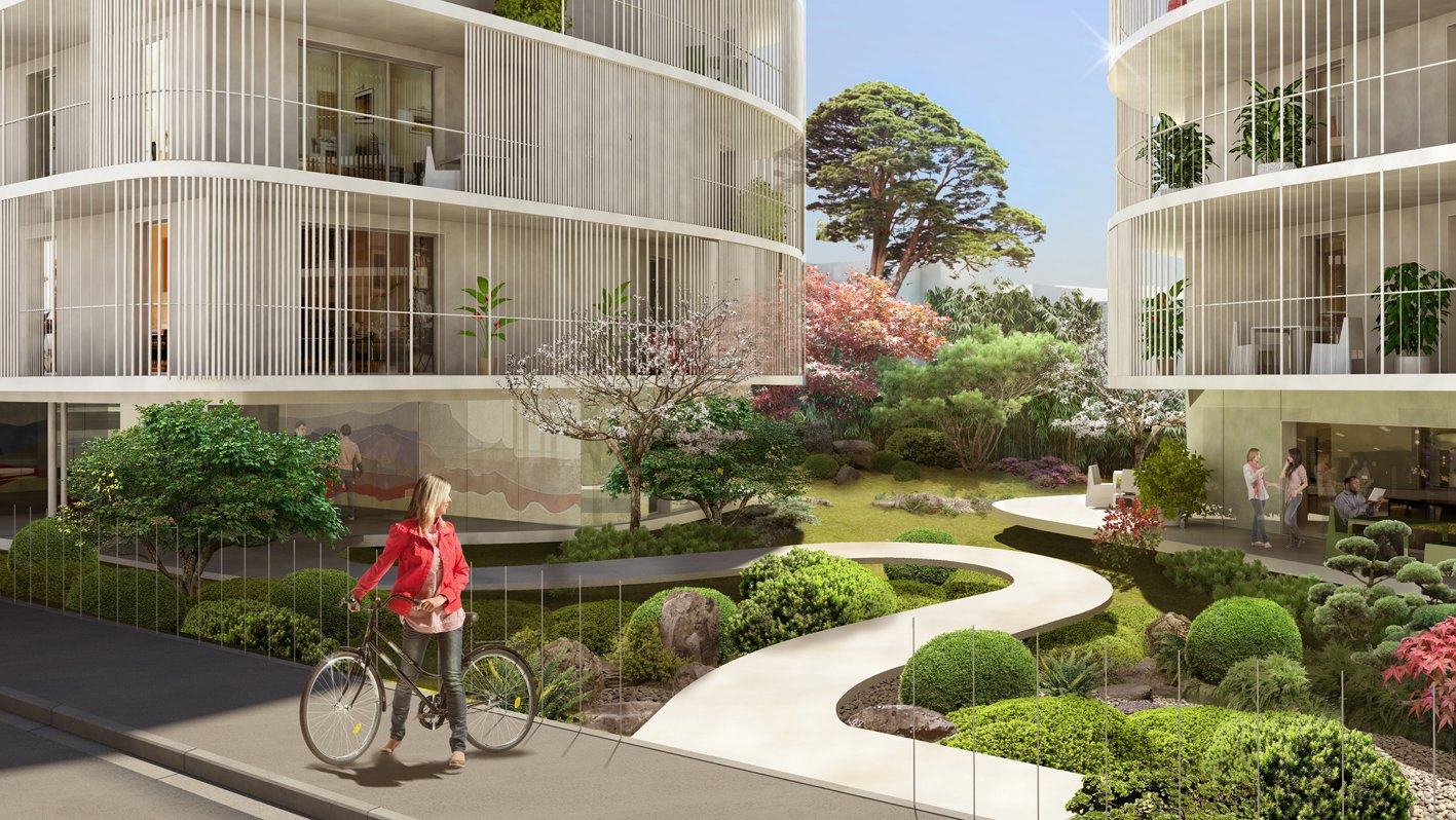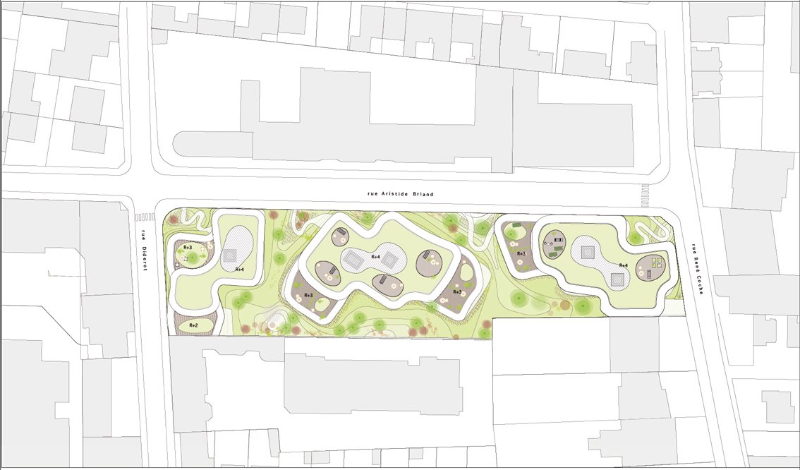 Nous avons imaginé une constellation de bâtiments articulés, ouvrant un dialogue avec l’environnement, basé sur le vaste espace extérieur privé et collectif.
